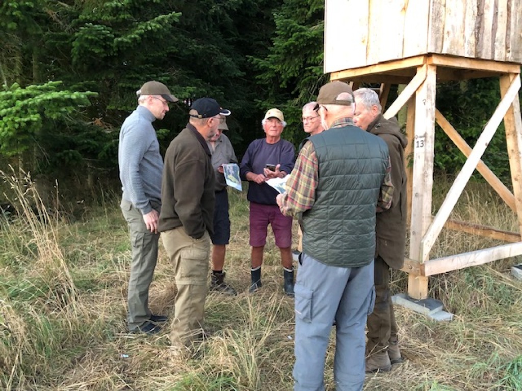 13 deltagere i efterårs-/vinter- riffelpuljen var mødt op for at deltage i fremvisningen af de nye arealer på "Nord" og de nye stigers placeringer her. Heraf vores fire nye medlemmer, Kirsten og Jimmi lkaursen, Ole Lynggaard og Flemming Jørgensen. Også incl. vores 3 jagtudvalgsmed- lemmer Leif Lyngsø, Klaus Boll og Erik Fyhn Smidt og formand Jørgen Brøgger.