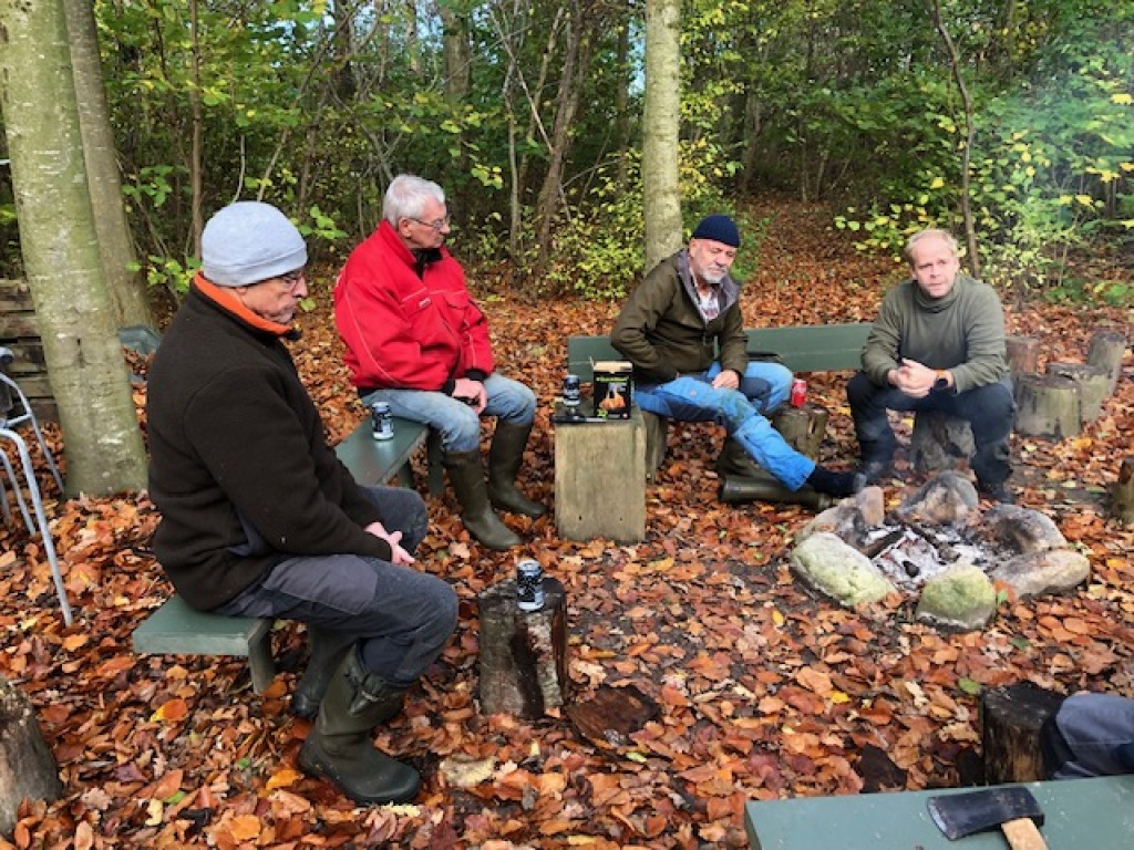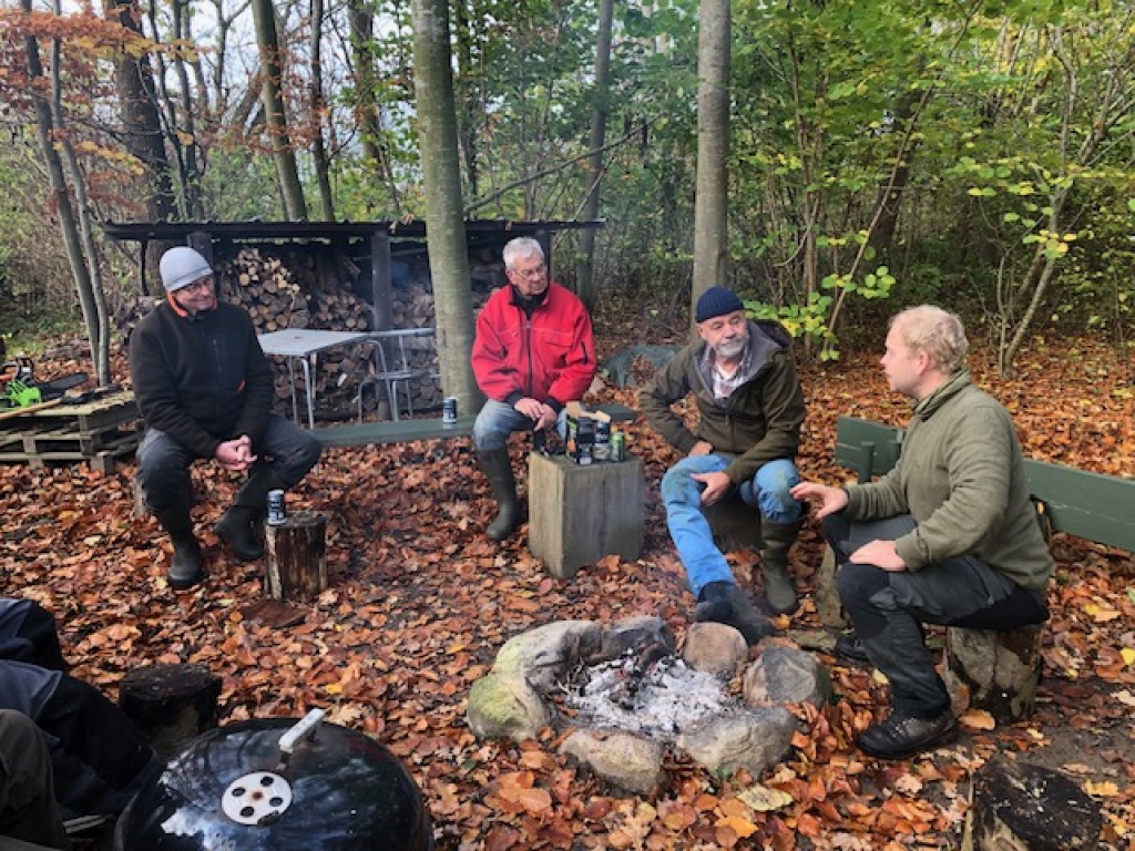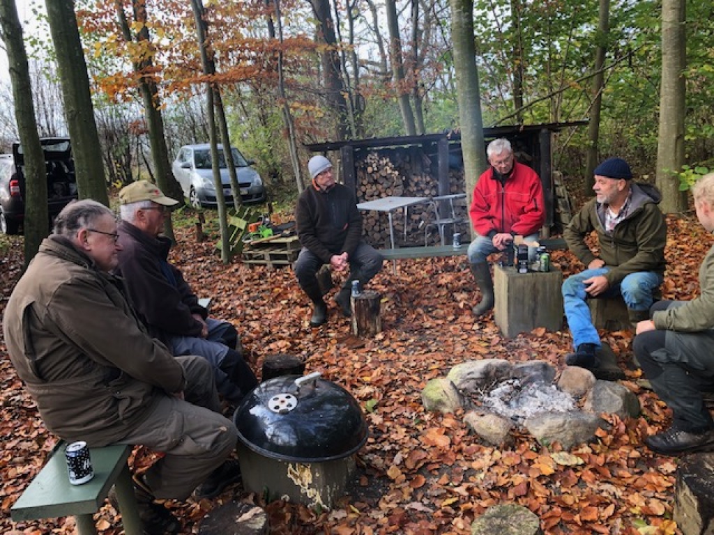 Under ledelse af Klaus, K.A. og Erik fra jagtudvalget gennemførte 7 medlemmer fredag den 14. nov. forskellige arbejdsopgaver som at slå stier, sikre stiger, opsætte saltsliksten. gøre rent om planter, eftersyn af fodertønder samt oprydning og brændeflækning ved jagthytten.Det hele var så effektivt, at man var færdige allerede til middag, og den planlagte arbejdsdag lørdag kunne aflyses. Der blev også "gået sådan til den", at alle glemte at tage billeder af de forskellige arbvejdsopgaver. Det blev derfor kun til nedenstående fra da den hårdt tiltrængte og velfortjente hjertestyrkning blev indtaget.. Klik på det enkelte foto for at se det i stor størrelse.