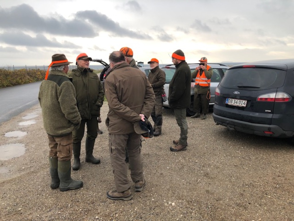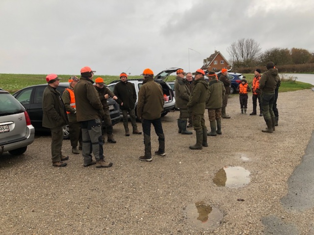20 morgenfriske, glade og forventningsfulde deltagere var mødt frem til sæsonens anden jagt. I den allersmukkeste morgenstund. Koldt efter nattens frost, men da vi først havde fået skrabt isen af bilruderne, inden vi kørte hjemmefra, varslede det en særdeles smuk dag. Og det blev det !