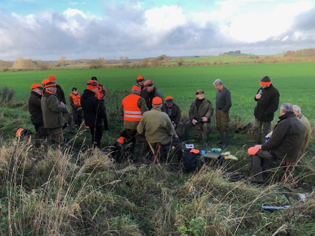 Vi deltes derefter i 2 hold, hvor det ene under ledelse af Peter drev det lange markstykke af op til og med remisen og derefter den anden anden halvel ned til skoven igen.