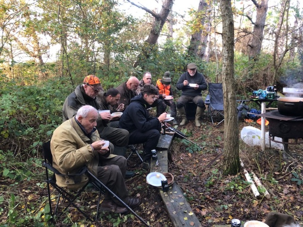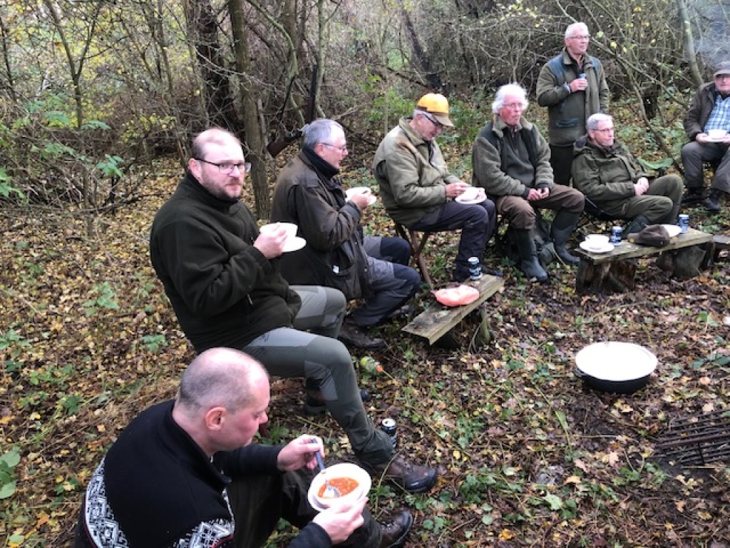 Der sluttedes af med madpakkespisning omkring bålstedet ved jagthytten, hvorefter Ole Bisp med vanlig lune røgtede hvervet som jagtfiskal. Alle tog hjem en dejlig jagtdags oplevelser rigere.