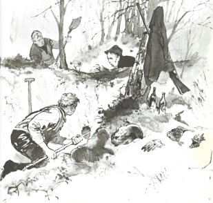 Når ”selve jagten” er afsluttet samles vi igen i ”maskinhuset”, hvor Alvar er vært ved et stykke wienerbrød til den eftermiddagskaffe, som vi også selv medbringer.