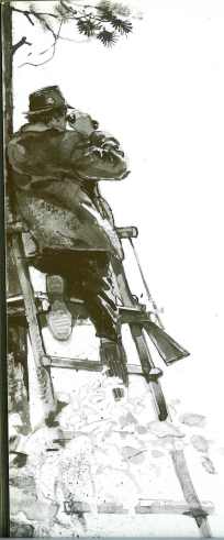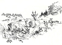 "Denne sidste bukkeaften i år går jeg mod stige 11. Langs grøften har jeg denne buk fremme i blomstermarken to gange på 25 m. afstand. Så lidt hoved, så lidt ryg, - ja og så … væk var han. Spændende. Jeg går en bue uden om og så mod stige 11. Ti meter foran mig rejser en rå, den springer mod stigen uden en lyd. Vinden er i vest, jeg går forsigtigt mod stigen; bukken er væk. Op i stigen ved 20-tiden. Nyder igen en dejlig aften. Erik sidder i stige 8 og vores formand er i stige 3, altid dejligt når vi er flere på vores dejlige jagt. Kl. 21.30 hører og fornemmer jeg dyr bag mig. Lukketid er kl. 21.57. Jeg ser bukken kl. 21.40, den kommer længere ud i blomsterne, ca. 25 m. Kl. 21.45 skyder jeg bukken. Den går ned i skuddet. Jeg repeterer; bukken rejser sig og går 15 m. om bag busken til højre for stigen. Jeg bliver siddende 10 minutter og går til anskudsstedet, hvor jeg ser blod. Jeg kan følge blodet om bag busken, hvor bukken ligger forendt. En kanon følelse, kort afstand og i en blomstermark !