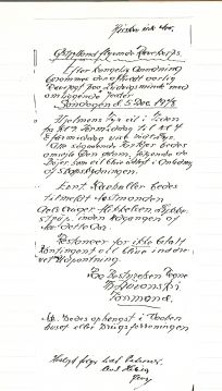 Desværre ser det ikke ud til, at foreningen har haft en forhandlingsprotokol fra starten. Den ældste protokol, foreningen er i besiddelse af, starter i 1947. Derimod er den første kassebog stadig i foreningens besiddelse. Den første side omfatter 1933 og 1934, - men det er alligevel et spørgsmål, om det er den første kassebog, - idet den starter med ”Transport” af 92,00 kr. i indtægter og 78,93 kr. på udgiftssiden.