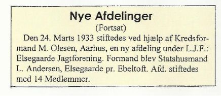 Elsegaarde Jagtforening er stiftet den 24. marts 1933.
