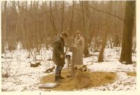 Vildtpleje har altid været en vigtig del af foreningens aktiviteter. På de to fotos herover er det vinterfordring i Elsegaarde Bøgeskov, januar 1969.