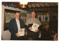 Jens Bredstrup (t.v.) og Bertram Mikkelsen udnævnes til æresmedlemmer ved generalforsamlingen den 3. februar 1992.