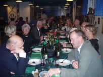 Jubilæumsfesten afholdtes i Marinestuen, hvor der i dagens anledning var lavet en fin jagtudstillinng. - Efter velkomstdrink af vin, fremstillet af skovens vilde bær, var der jubilæumsmiddag, bestående af fiskefad med hvidvinsdampet pangasiusfilét, lakseroulade, røget tun og krebs. Hovedretten var nøddefarseret rensdyrkølle og vildsvinefilét med ristede svampe, grøntsager, små kartofler, tyttebær og portvinssauce. Til dessert var der brombæris med frugtsalat og det hele afsluttedes med kaffe og kransekage. - Og efter middagen blev der danset til ud på de små timer.