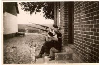 "Jægere in spe" - Niels Jacob ("Fyr") Bredstrup lærer Klaus (i midten) og Niels Bertram Mikkelsen at skyde gråspurve med luftbøsser.