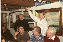Formand Niels Bertram Mikkelsen overrækker "Kragepokalen" til Arne Hviid (t.v.) ved generalforsamlingen, 1. januar 1990