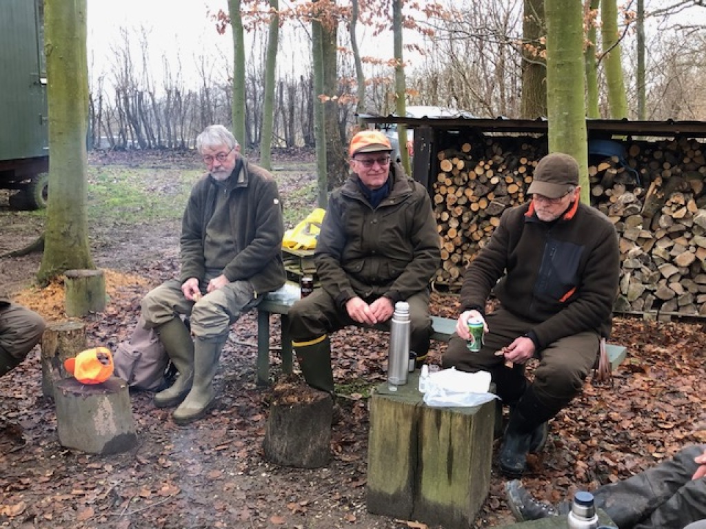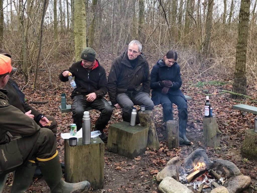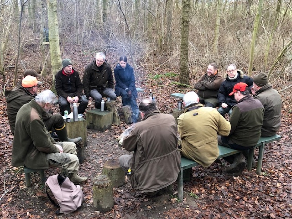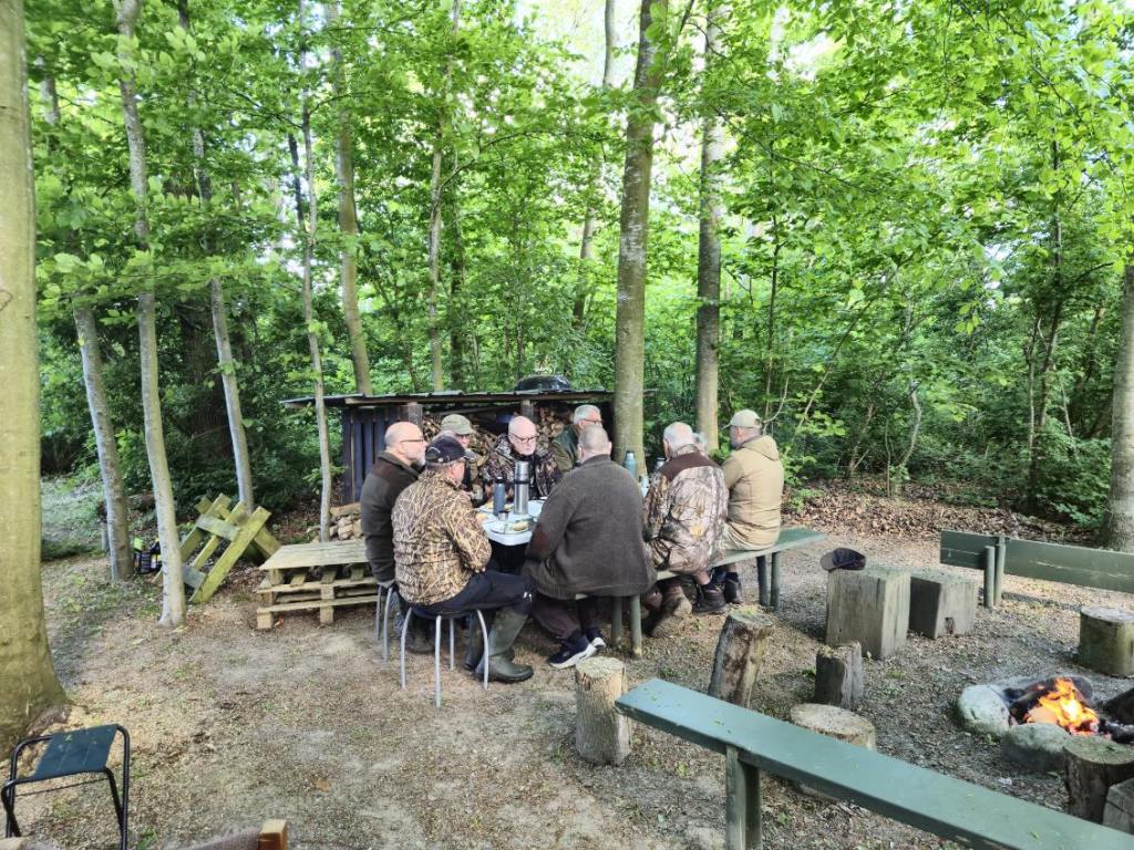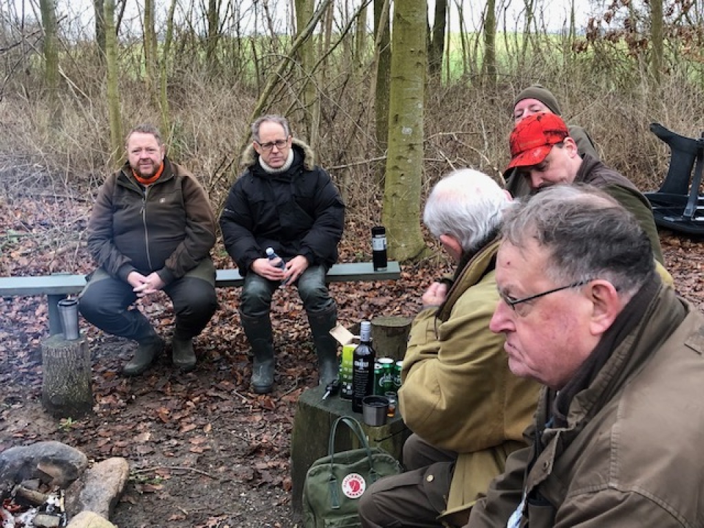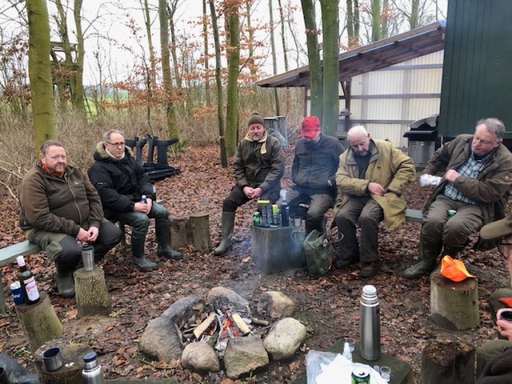 Der sluttedes af med madpakkespisning omkring bålstedet ved jagthytten, hvorefter Ole Bisp med vanlig lune røgtede hvervet som jagtfiskal. Alle tog hjem en dejlig jagtdags oplevelser rigere.