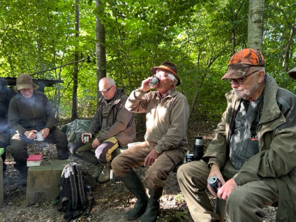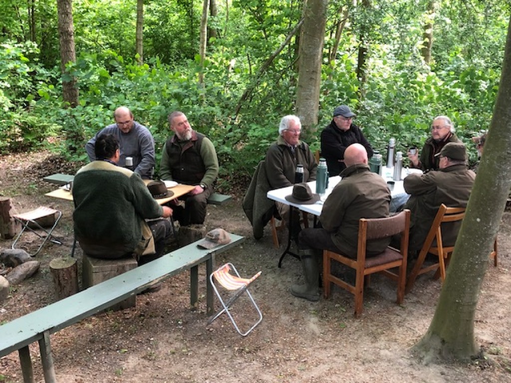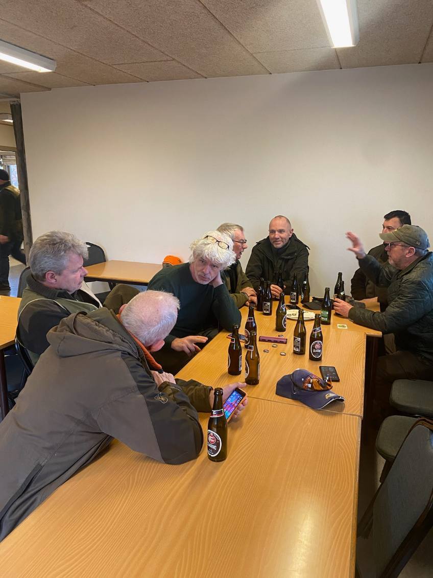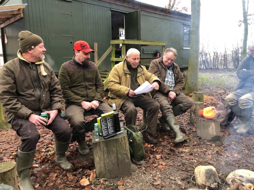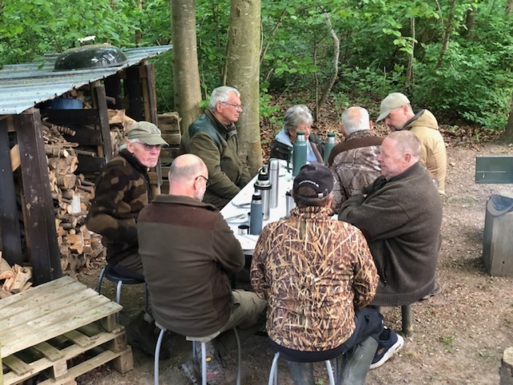 Der sluttedes af med madpakkespisning omkring bålstedet ved jagthytten, hvorefter Ole Bisp med vanlig lune røgtede hvervet som jagtfiskal. Alle tog hjem en dejlig jagtdags oplevelser rigere.