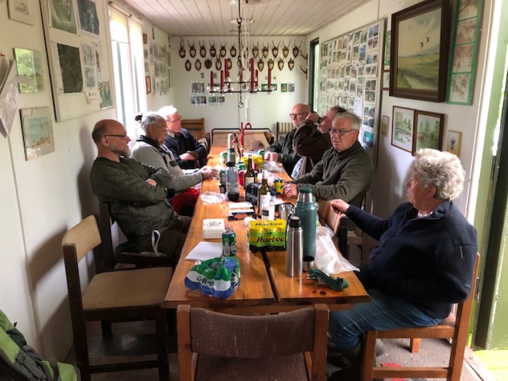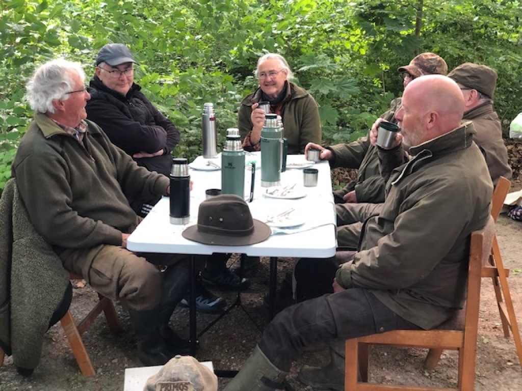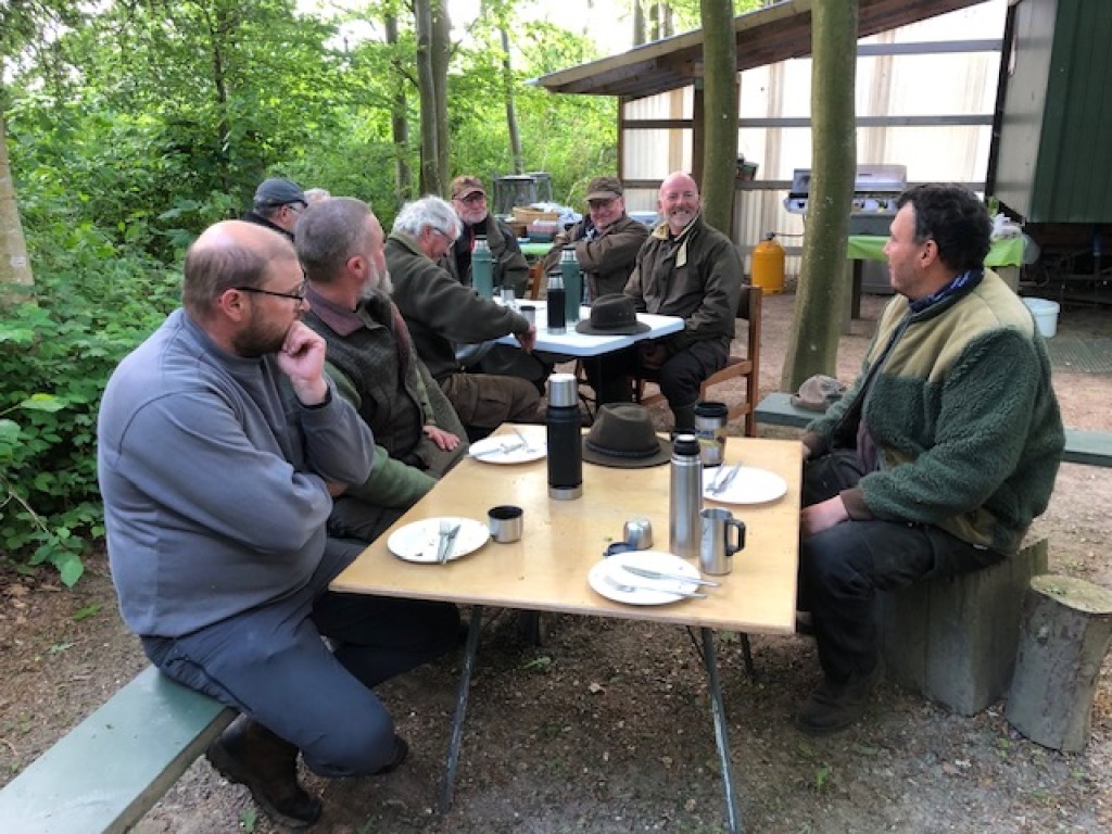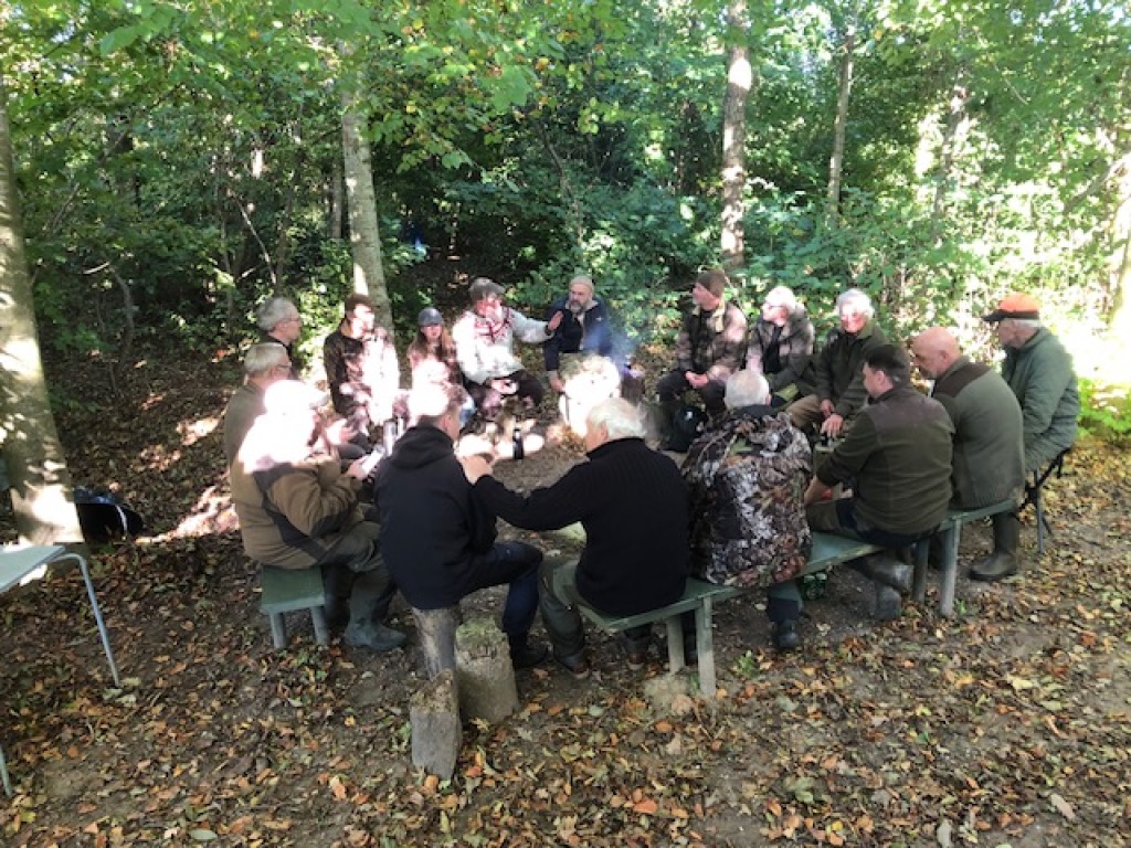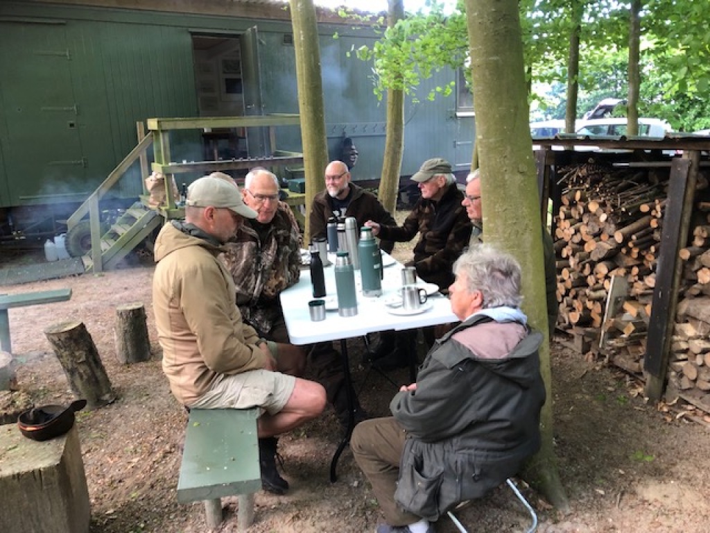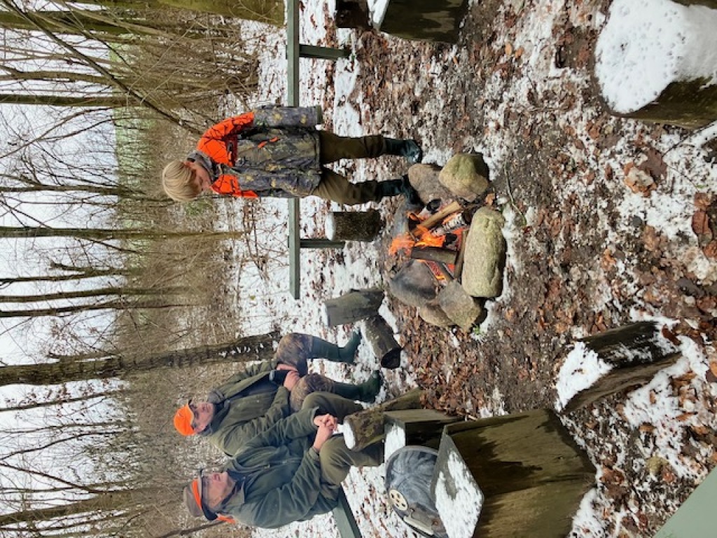 Der sluttedes af med madpakkespisning omkring bålstedet ved jagthytten, hvorefter Ole Bisp med vanlig lune røgtede hvervet som jagtfiskal. Alle tog hjem en dejlig jagtdags oplevelser rigere.