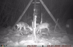 Vi så ikke noget råviædt i mosen på "Syd" på premoierejagten i går. Men det er der -. det bekræfter denne hilsen ra vildtkameraet i morgen kl. 05.20. Smukke dyr