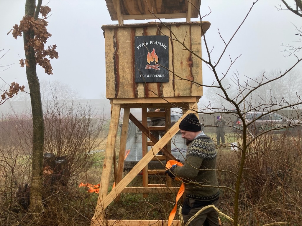 Nyt skydetårn, doneret til foreningen, er nu opstillet