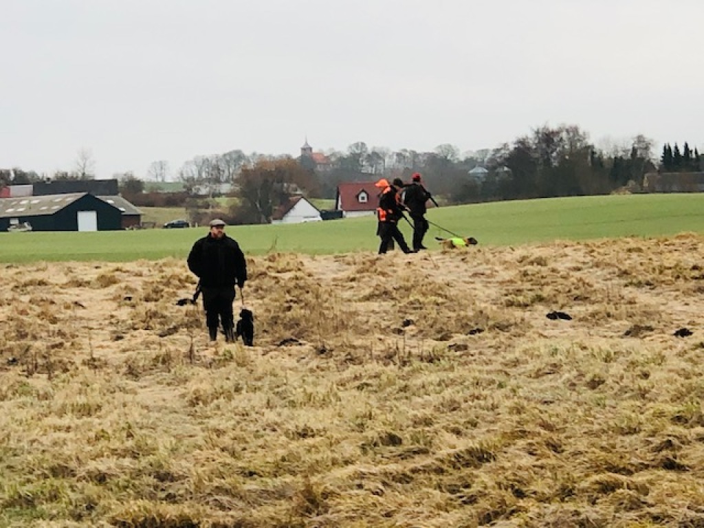 Vi havde besøg af gravjæger Knud Sørensen fra Grenaa og hans dygtuge, gravgående hund samt Knuds makker Ole. Derudover deltog 6 af foreningens medlemmer, der blev posteret forskellige "strategiske steder", hvor det måtte forventes, at ræven ville søge mod, hvis de ved graven ikke skulle få ram på den.