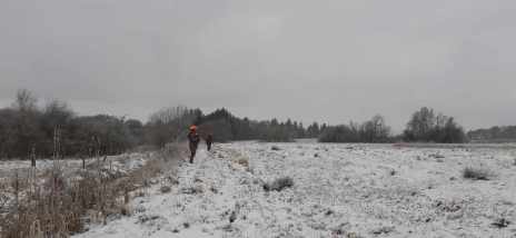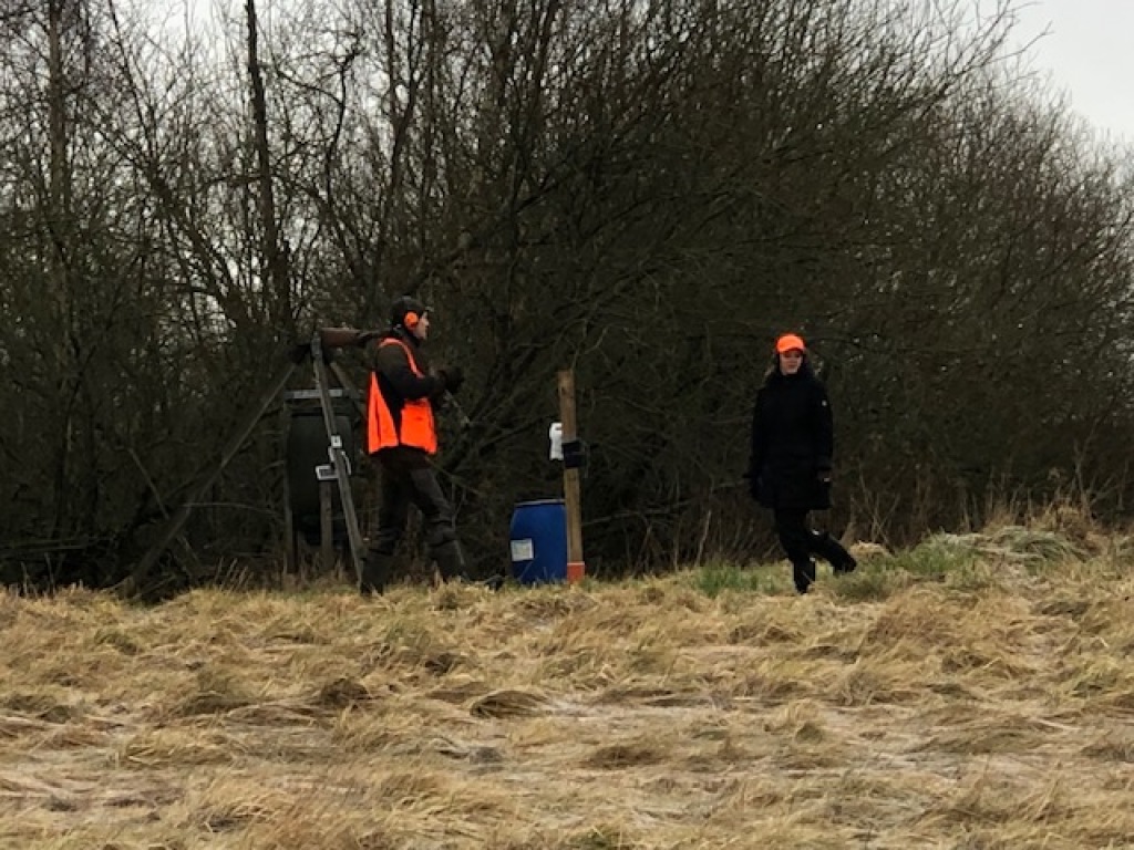 Forventningerne var ellers sat lidt højt, da vi så helt frisk fod af mårhund på vej på post, - med retning mod kunstgraven nord for andesøen (Syd). Men den var altså ikke gpået i grave, og var heller ikke i remisen. Så må vi håbe på, at den falder for en kugle fra en af deltagerne i riffelpuljen.
