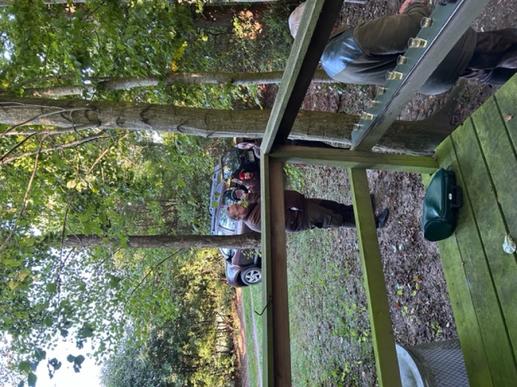 Vort gode medlem Mogens Hoelgaard deltog i Rosenholm Jagtforenings "juleskydning" på flugtskydningsbanen i Falkær den 21. december 2024. Her var han så heldig at vinde lodtrækningen om et splinternyt jagttårn i træ, - med tag. Dagen efter donerede Mogens generøst dette flotte jagttårn til Elsegaarde Jagtforening til opstilling på Colindseje.