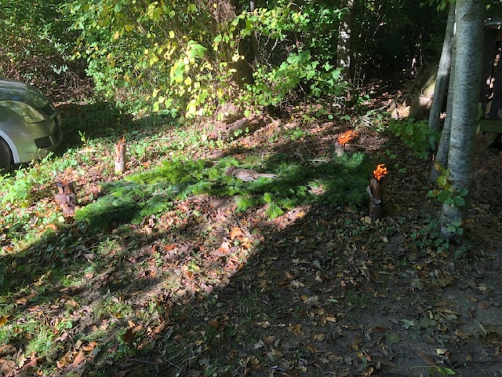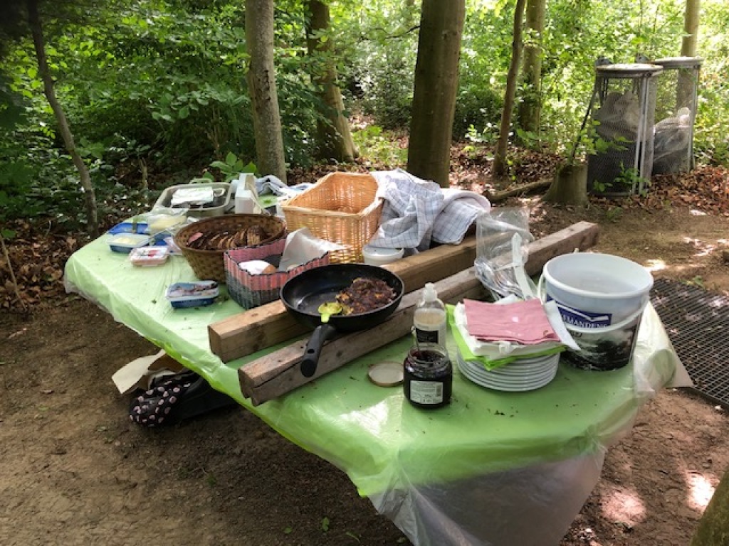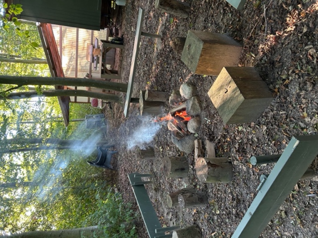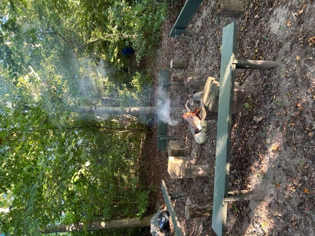 Vel tilbage til jagthytten samledes vi omkring bålstedet, hvor der holdtes "afslutningsparade". Grundet det gode vejr, besluttede alle at indtage madpakkerne omkring bålstedet.