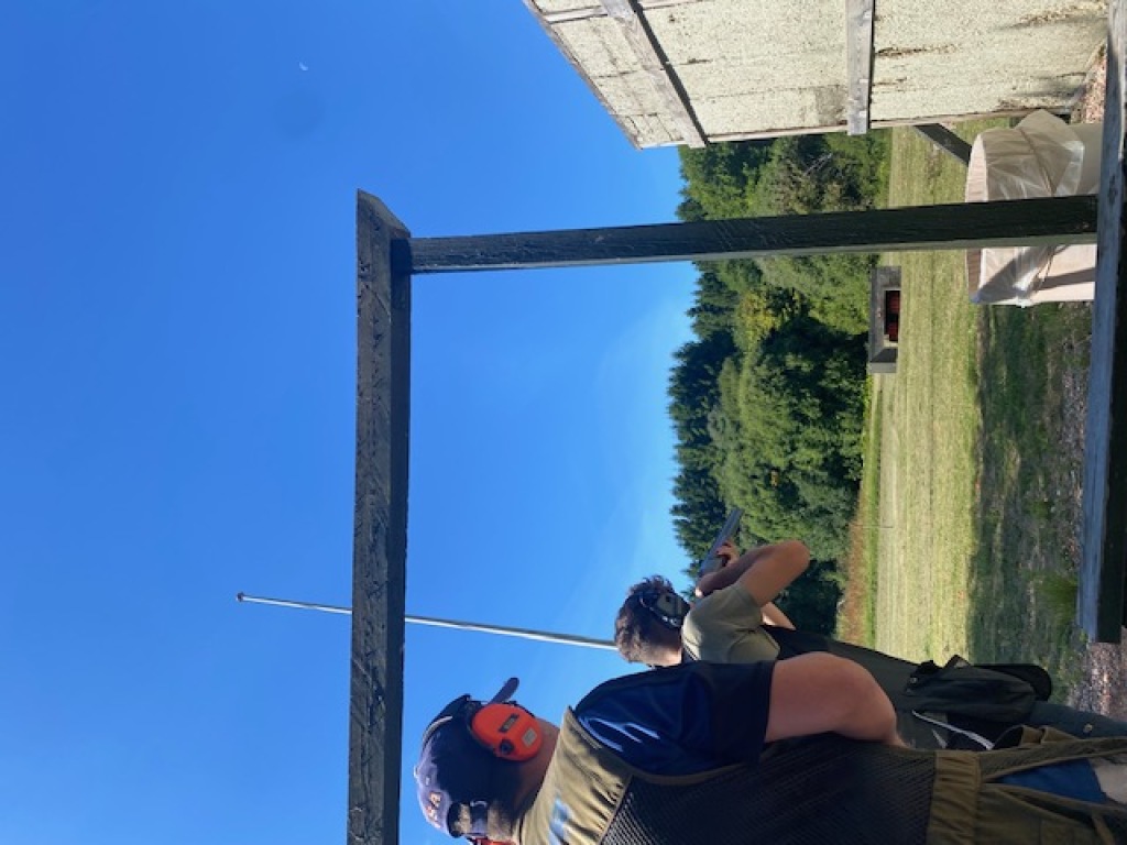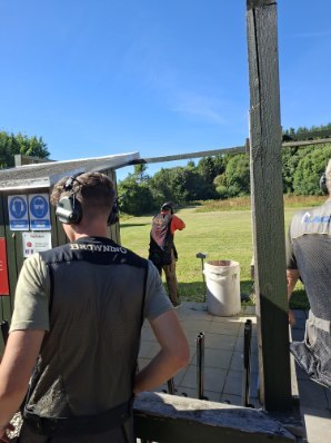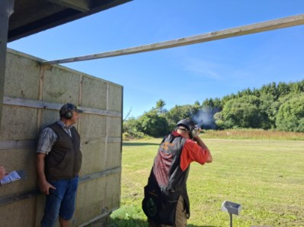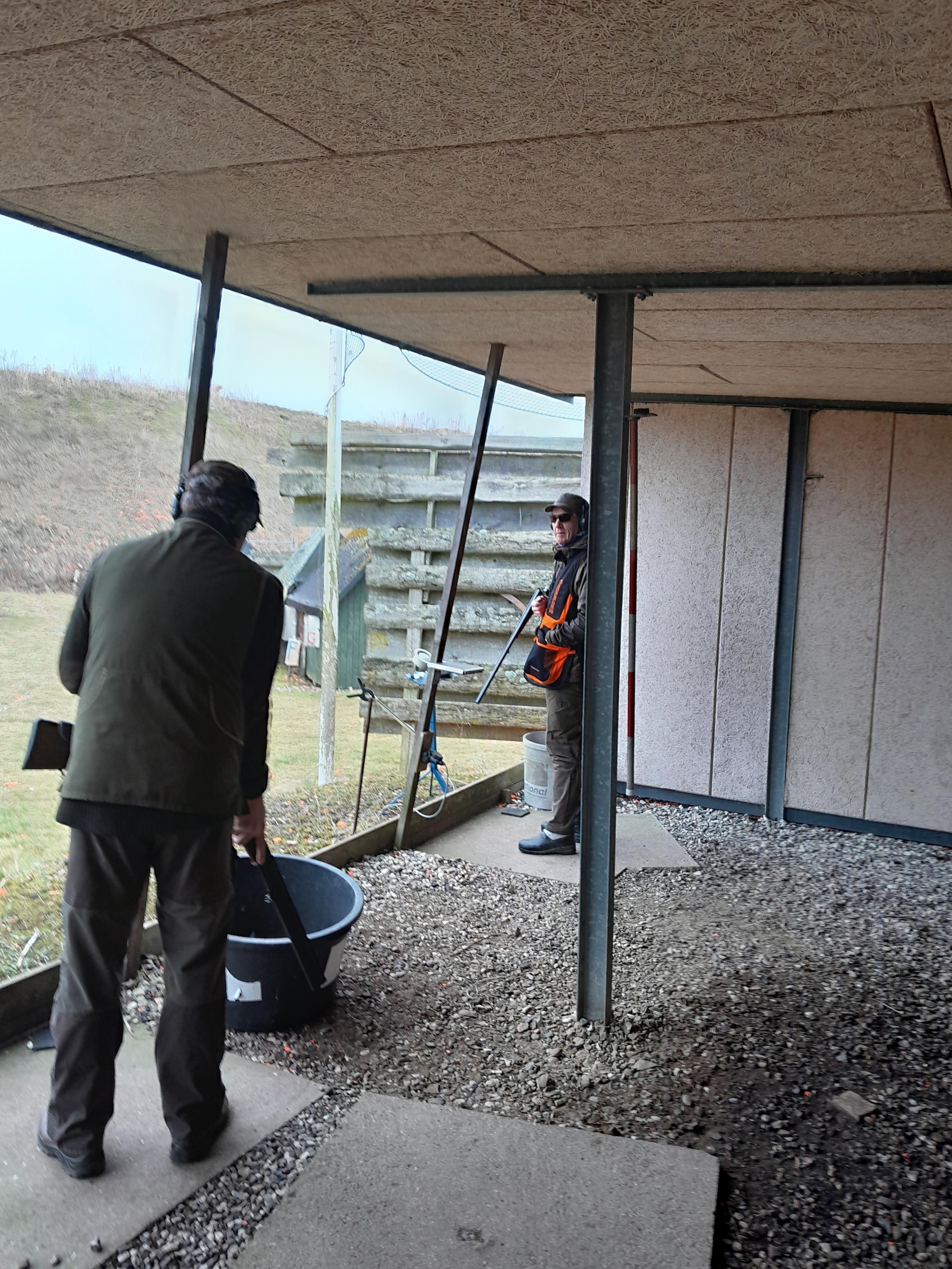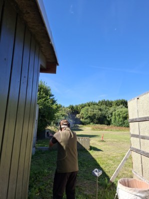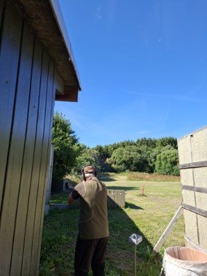 "Vi havde en rigtig fin tur på skydebanen i dag.- Vi kunne både skyde almindelig lerdue skydning, og så sporting.