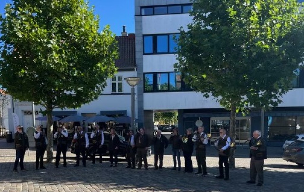 Alle tilhørere sagde bagefter, at det havde lydt meget smukt. Bemærkelsesværdigt var det, at al trafik, kørende såvel som gående, standsede op i ærbødighed, indtil vi var vfærdige med at blæse. Meget fornem gestus.