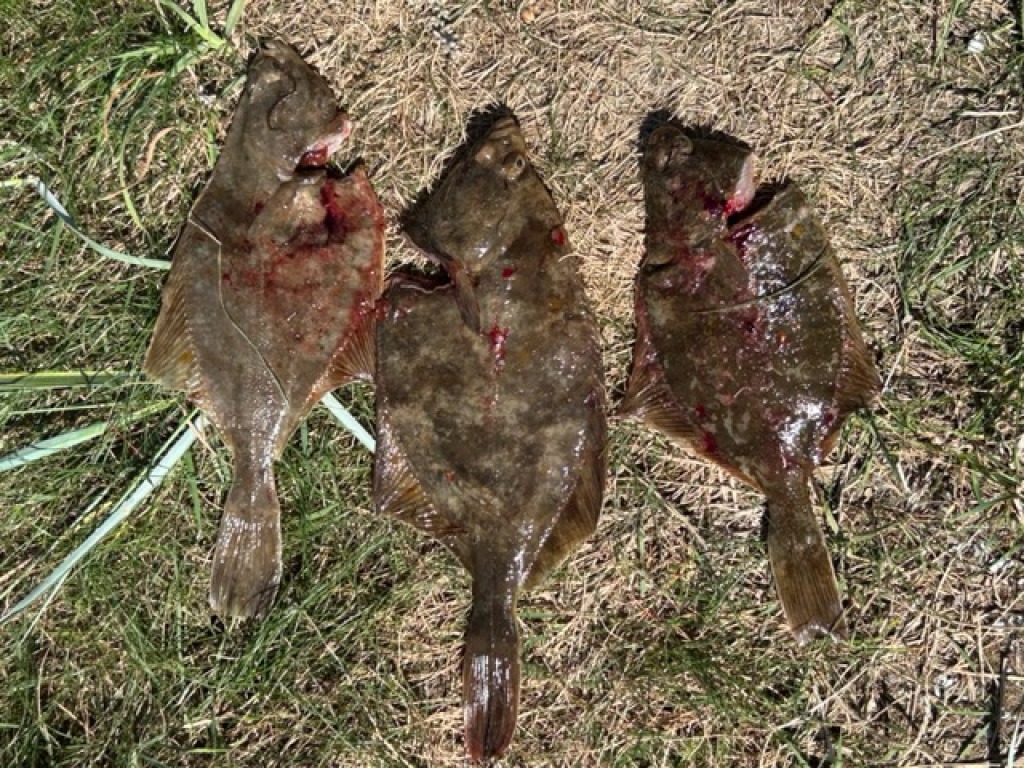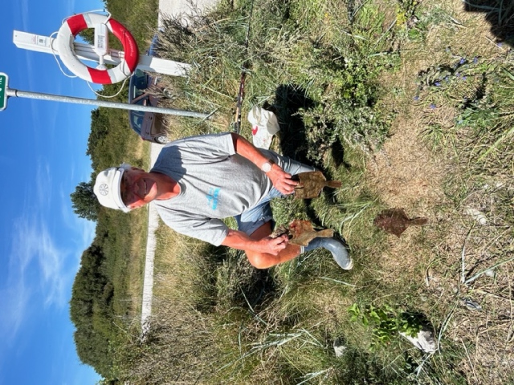 Også stort tillykke til "storfanger" Klaus med de 3 skrubber. Der var til dagen udsat præmier til de, der fangede henholdsvis den første, den største og de fleste fisk. Klaus stod således til at vinde alle præmier, men generøst nøjedes han med at modtage den for den største fisk (en fin kyst-fiskestang skænket af vort mangeårige gode medlem og tidligere jagtfiskal Niels T. Holst), mens han sagde, at de to andre præmier måtte gemmes til næste gang, foreningen afholder fisketur.