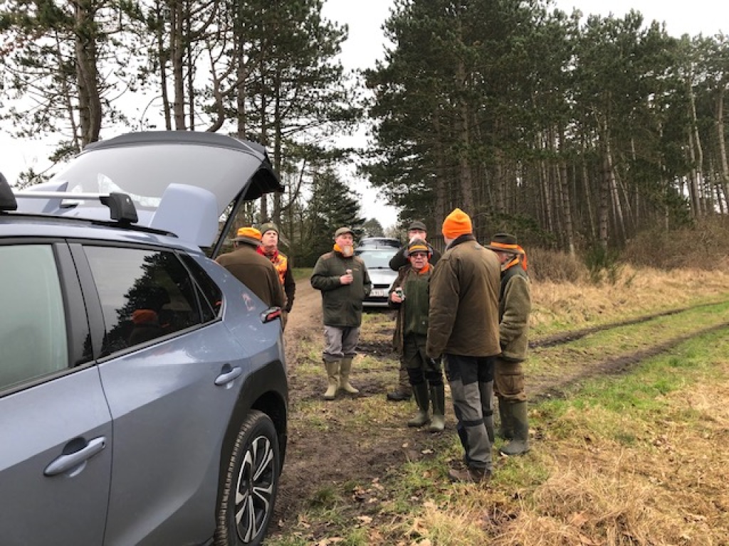 20 morgenfriske, glade og forventningsfulde deltagere var mødt frem til sæsonens anden jagt. I den allersmukkeste morgenstund. Koldt efter nattens frost, men da vi først havde fået skrabt isen af bilruderne, inden vi kørte hjemmefra, varslede det en særdeles smuk dag. Og det blev det !