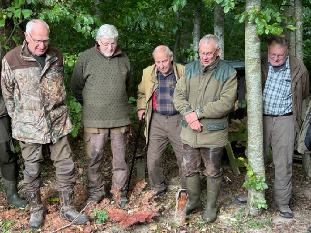 Efter formandens mindeord blev der holdt et minuts stilhed, der blev efterfulgt af "Jagt Forbi" på jagthorn. Alle stående med blottede hoveder.