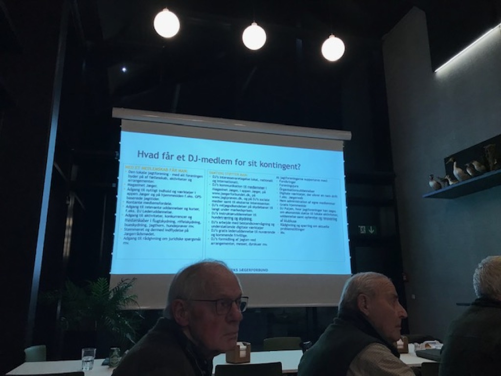 Som et forsøg blev årets generalforsamling afholdt på en lørdag, - for at tilgodese de medlemmer, der på grund af bopæl, arbejde eller andet ikke har mulighed for at deltage på en hverdagsaften. Det var måske knap så god en idé, som vi havde troet. Der deltog lidt færre, end vi plejer at være, og af de medlemmer, vi af samme grund havde tænkt særligt på, var der kun en der deltog. - Det er vores indtryk, at der var flere, der havde foretrukket at gå på jagt end at gå til generalforsamling.