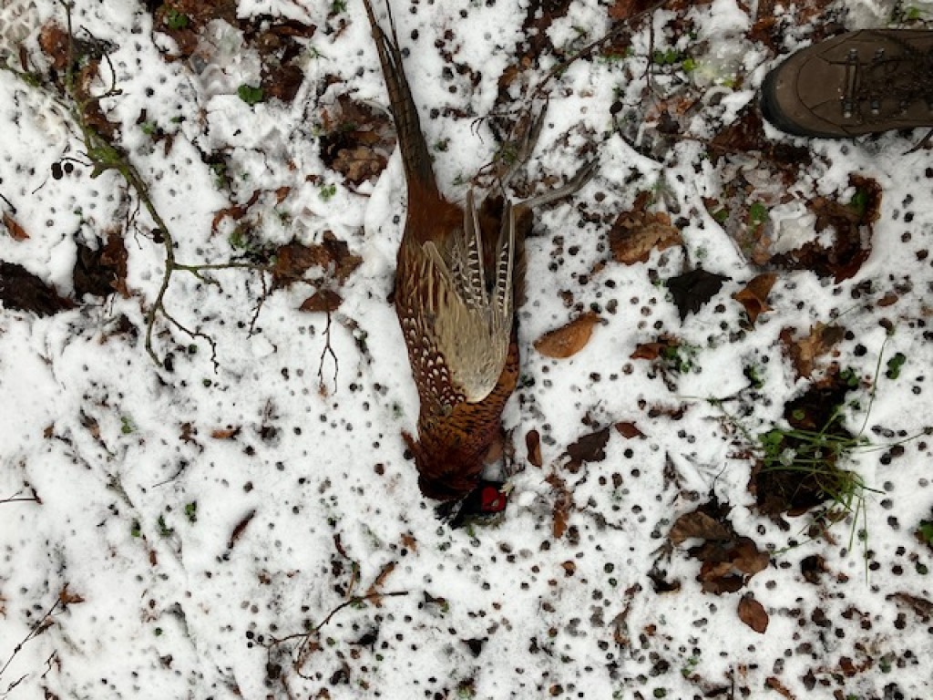 Det var en dejlig dag i det smukt snepudrede landskab, hvor der blev set forskelligt vildt, men kun afgivet skud til en fasankok, der faldt fuldt forendt. Det var vores gæst Christian Høgh fra Mols-Rønde Jagtforening, der leverede det flotte skud. Ved paraden efter jagten lod Christian generøst vores nyjægergæst, Muhammad, købe kokken. Flot gestus af Christian.