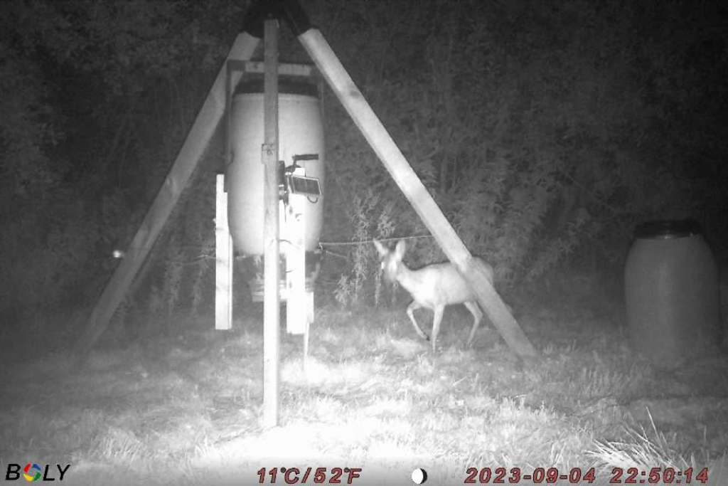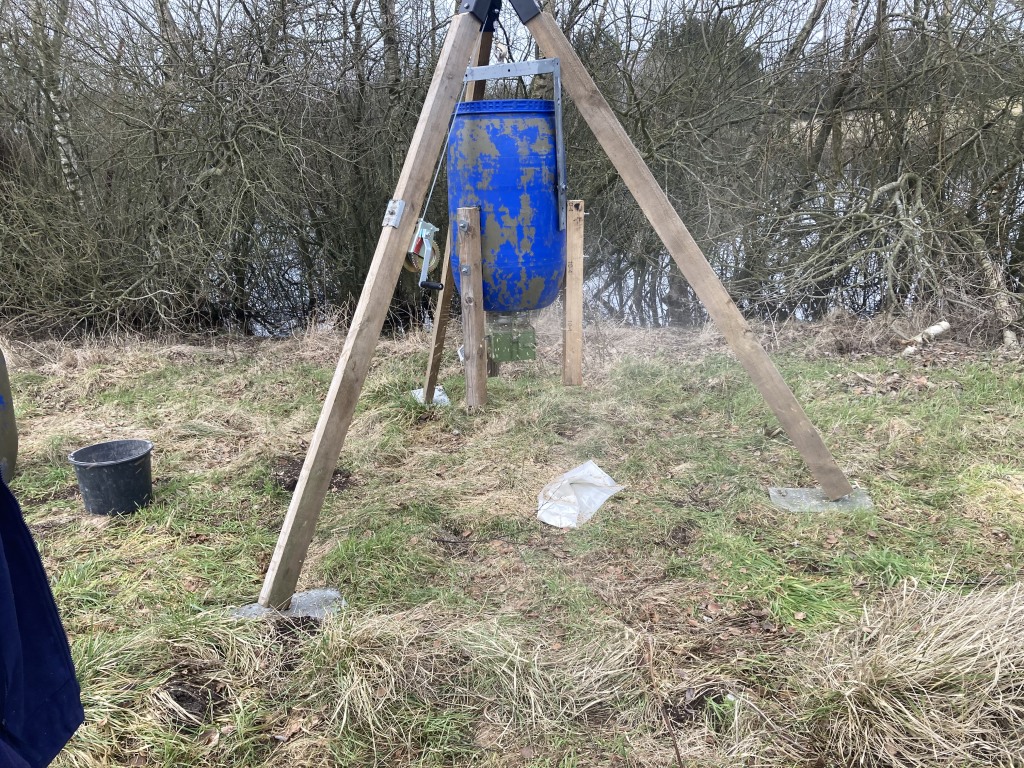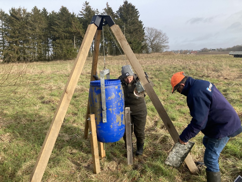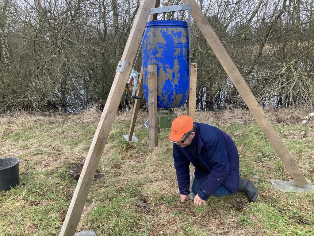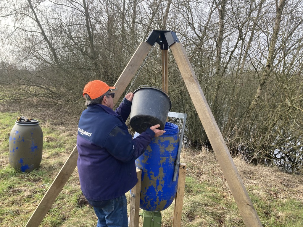 Så blev den nye, automatiske fodertønde etableret på reviret.