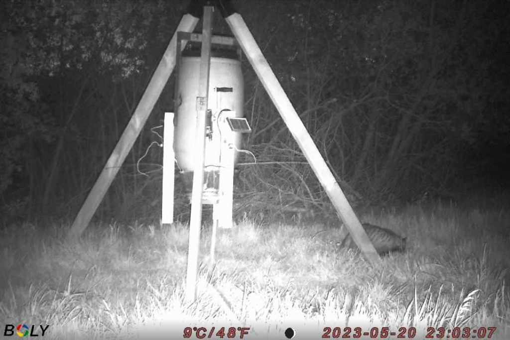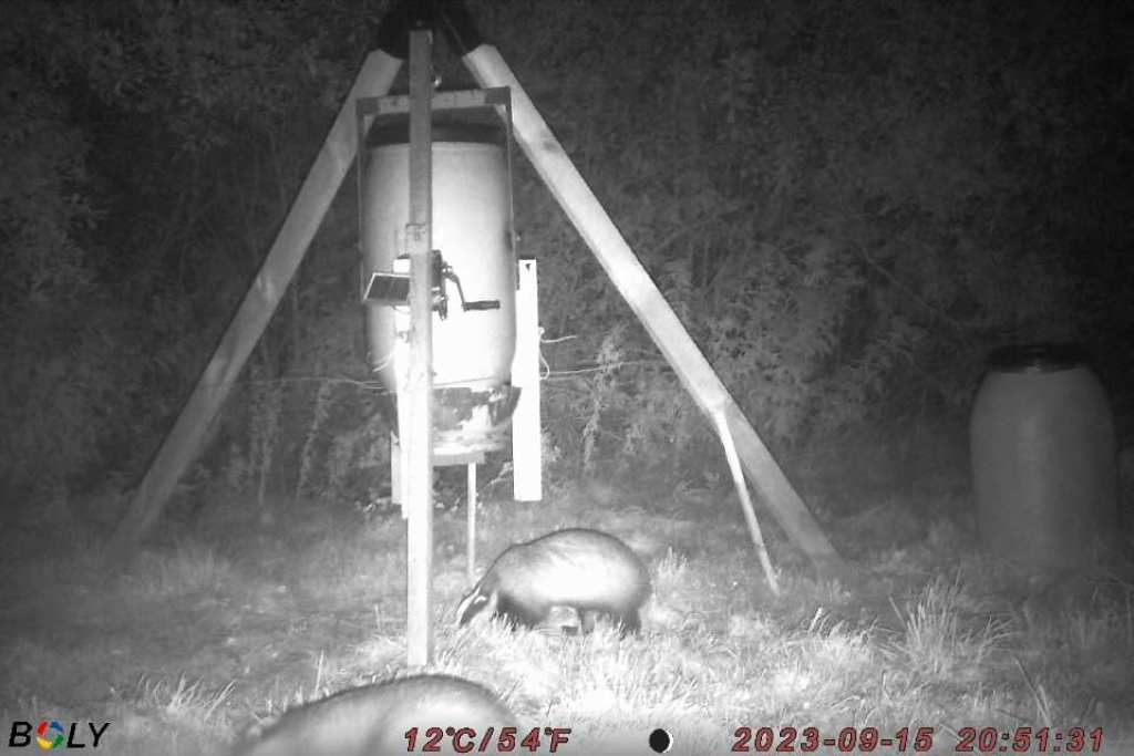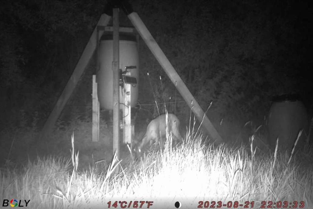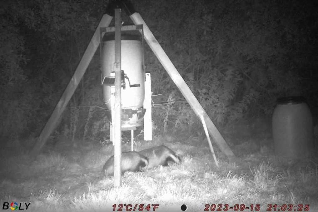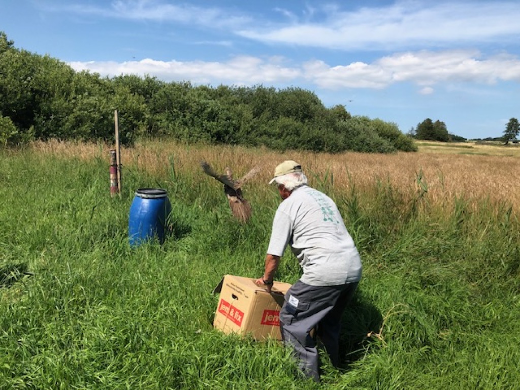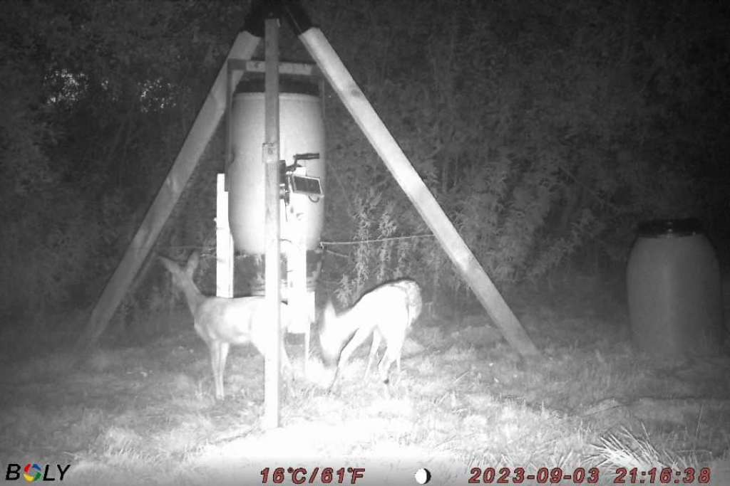 Så blev den nye, automatiske fodertønde etableret på reviret.