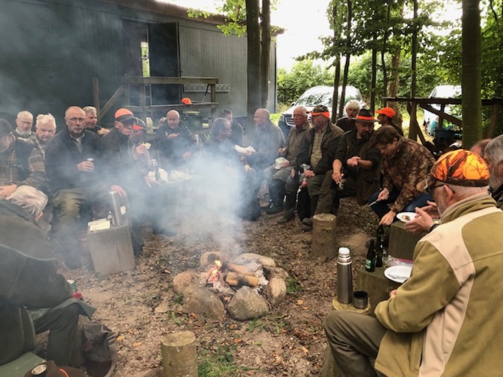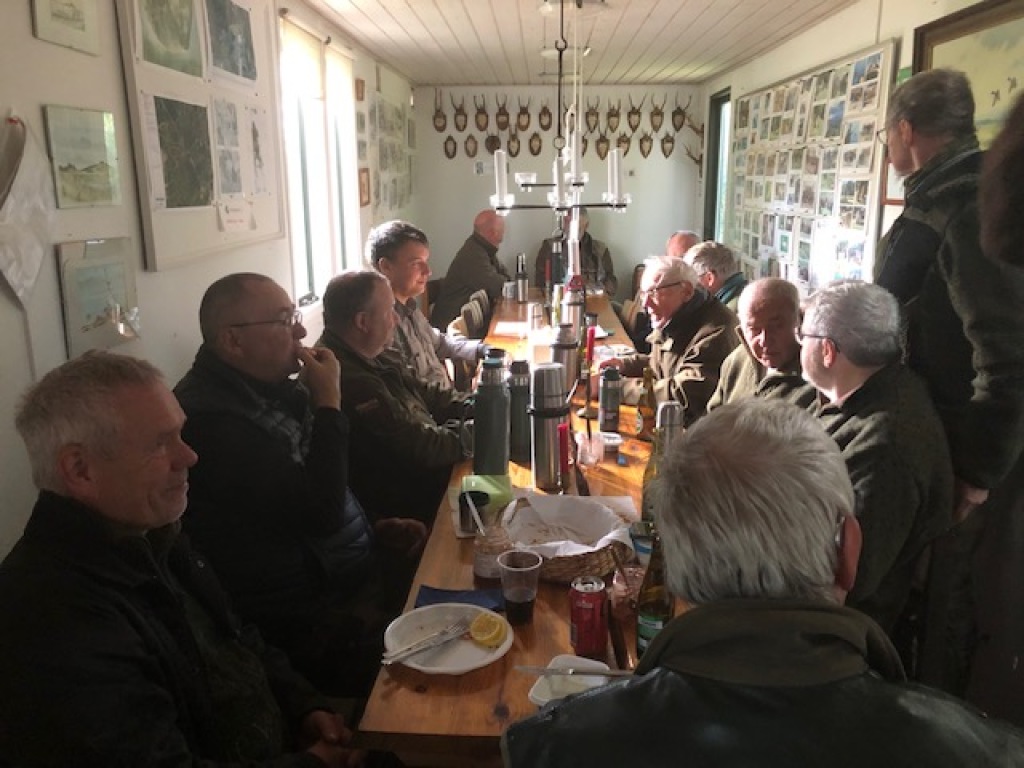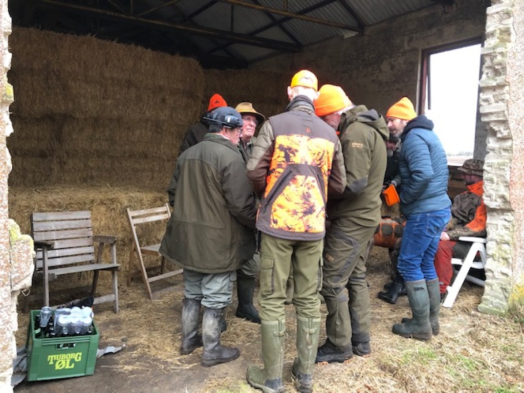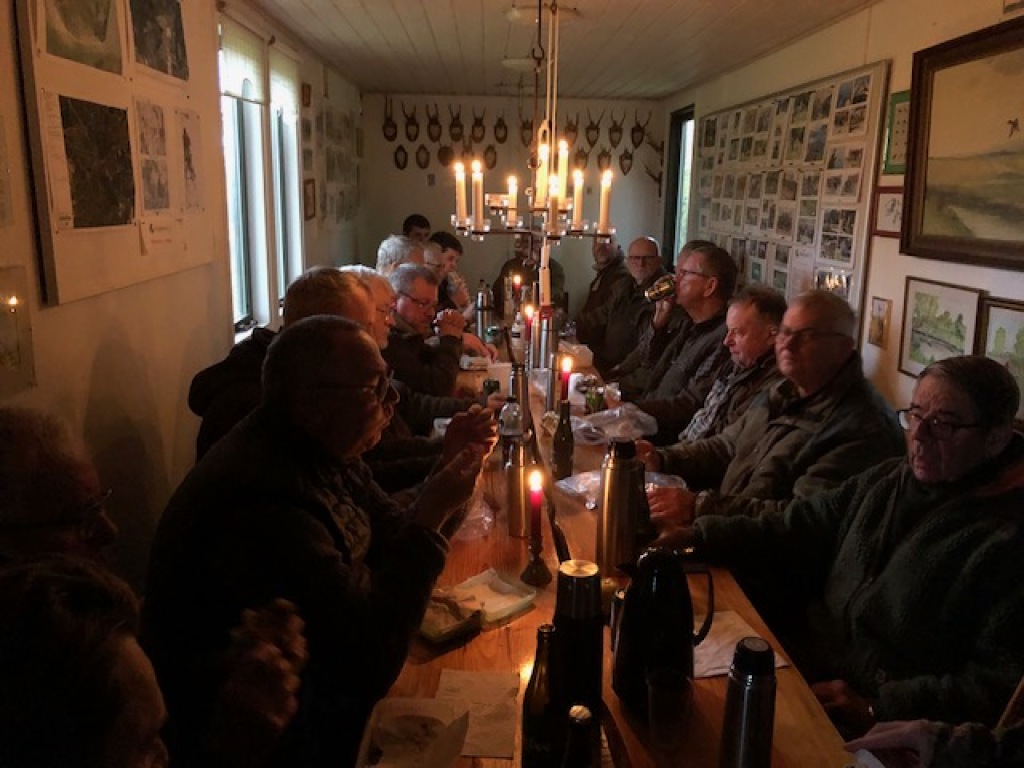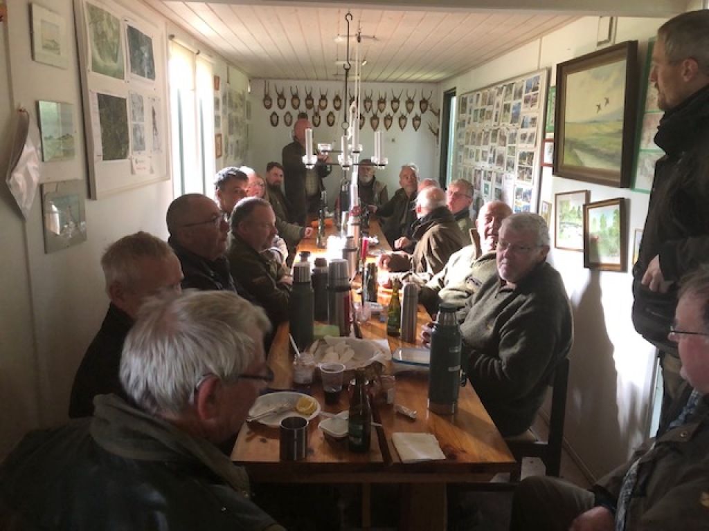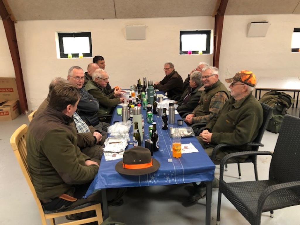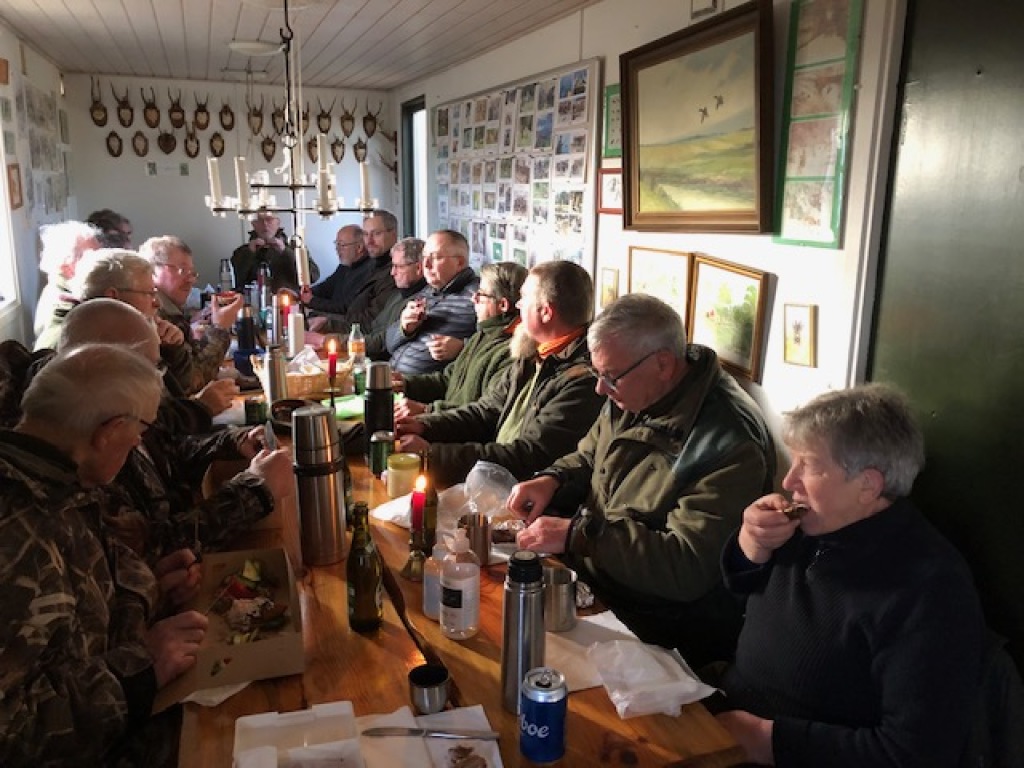 Efter endt dont samledes vi i jagthytten, hvor vi indtog vores madpakker under megen og god hyggesnak.