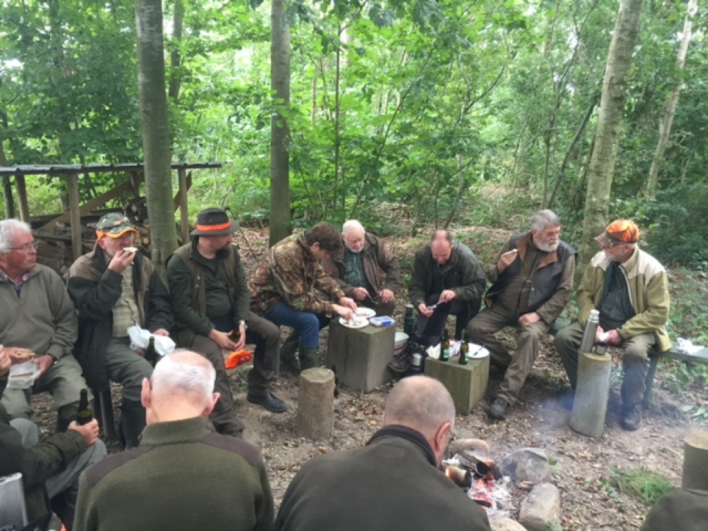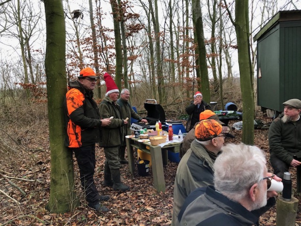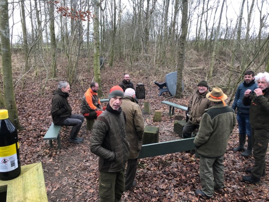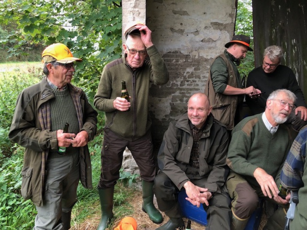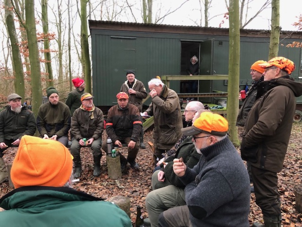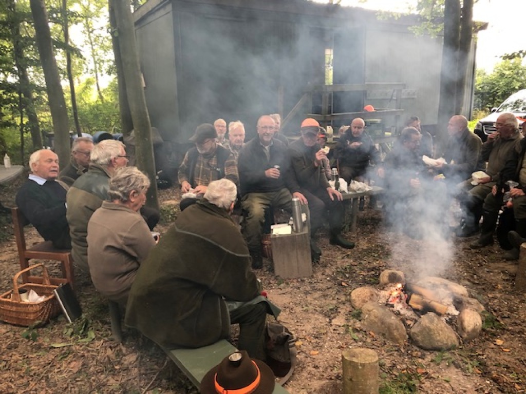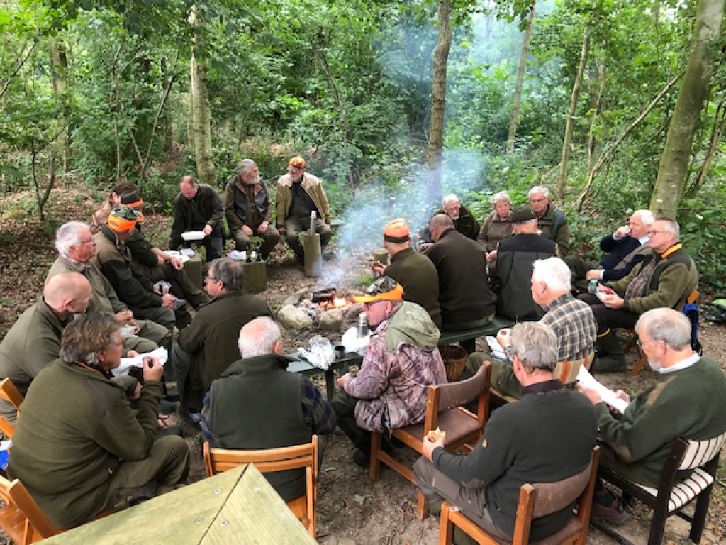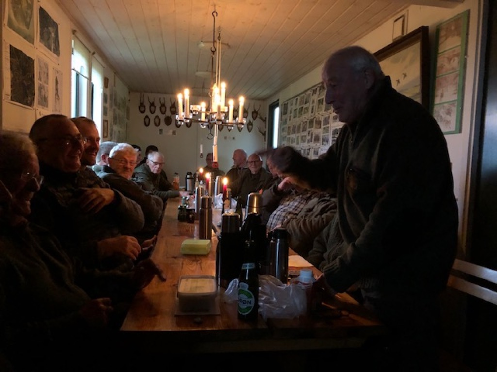 Efter endt dont samledes vi i jagthytten, hvor vi indtog vores madpakker under megen og god hyggesnak.