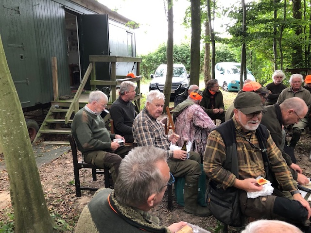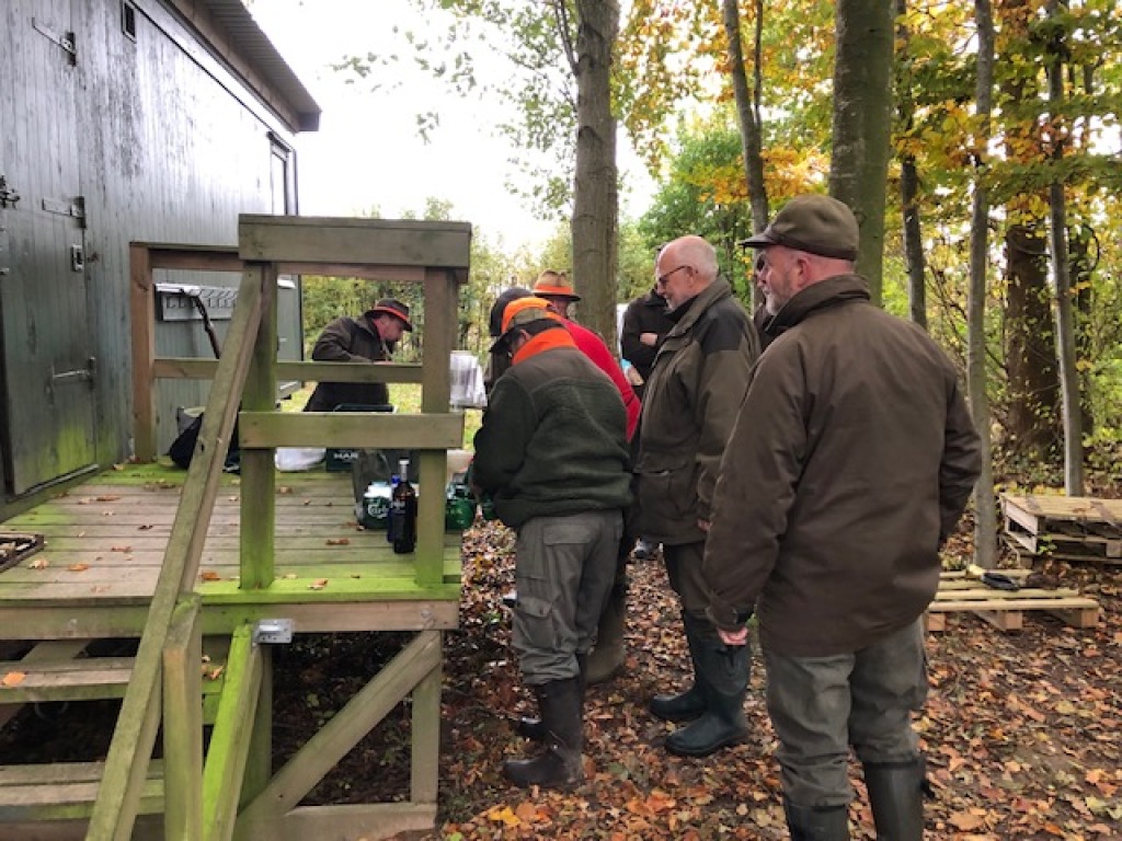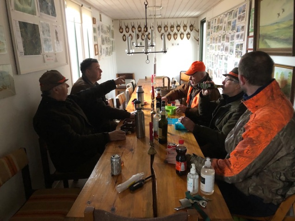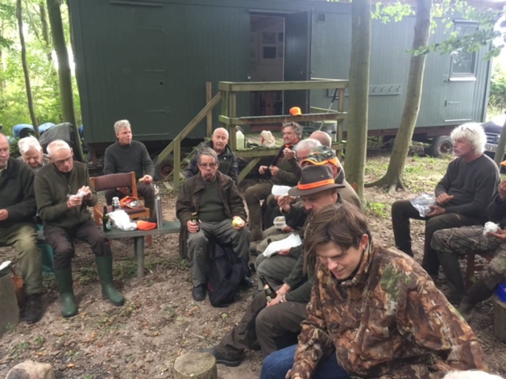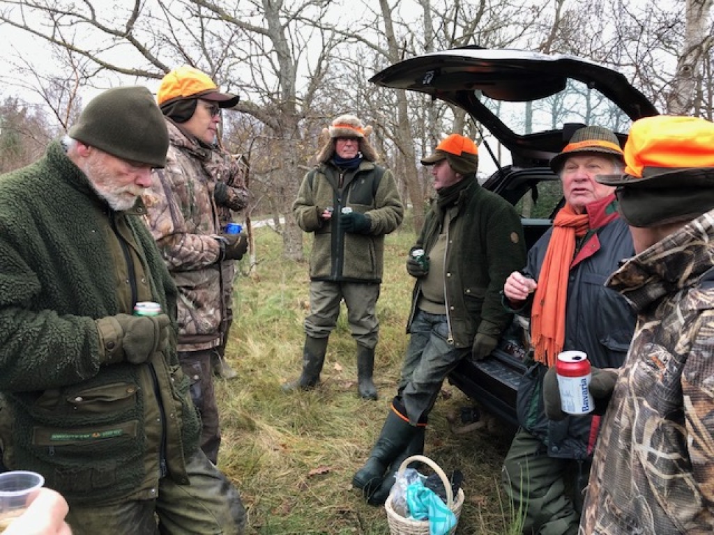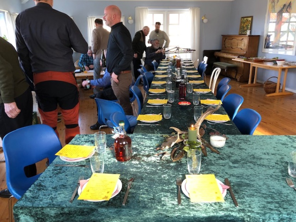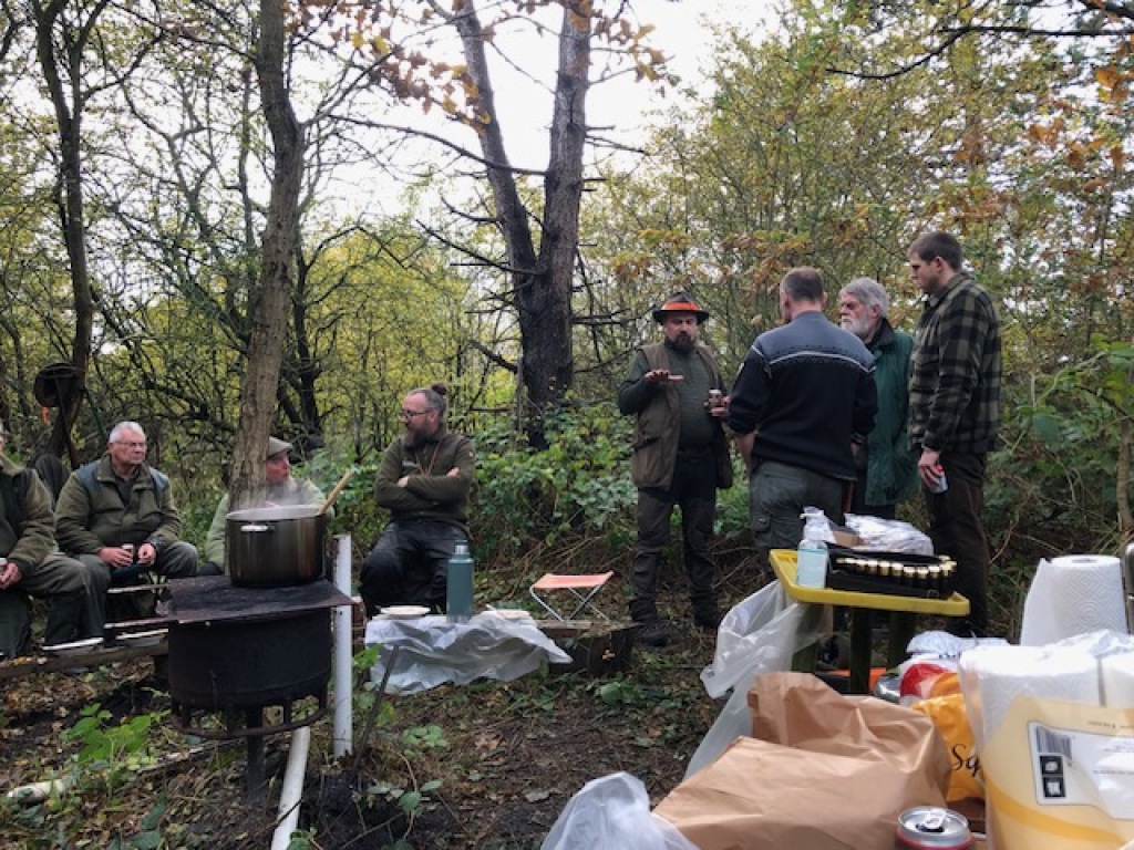 Efter endt dont samledes vi i jagthytten, hvor vi indtog vores madpakker under megen og god hyggesnak.