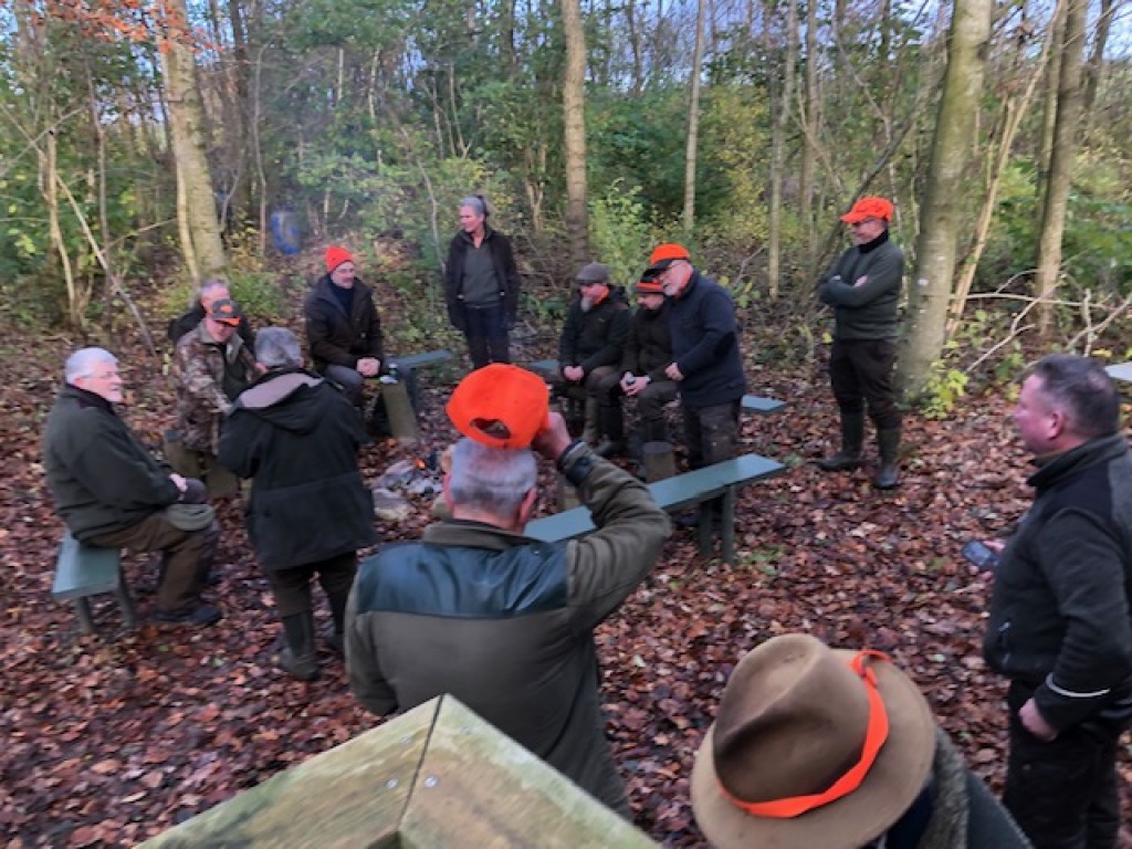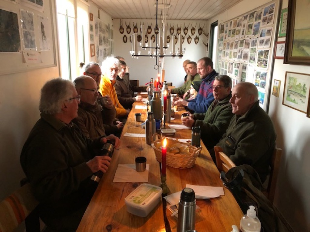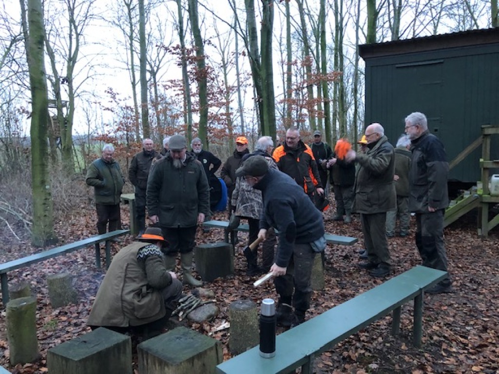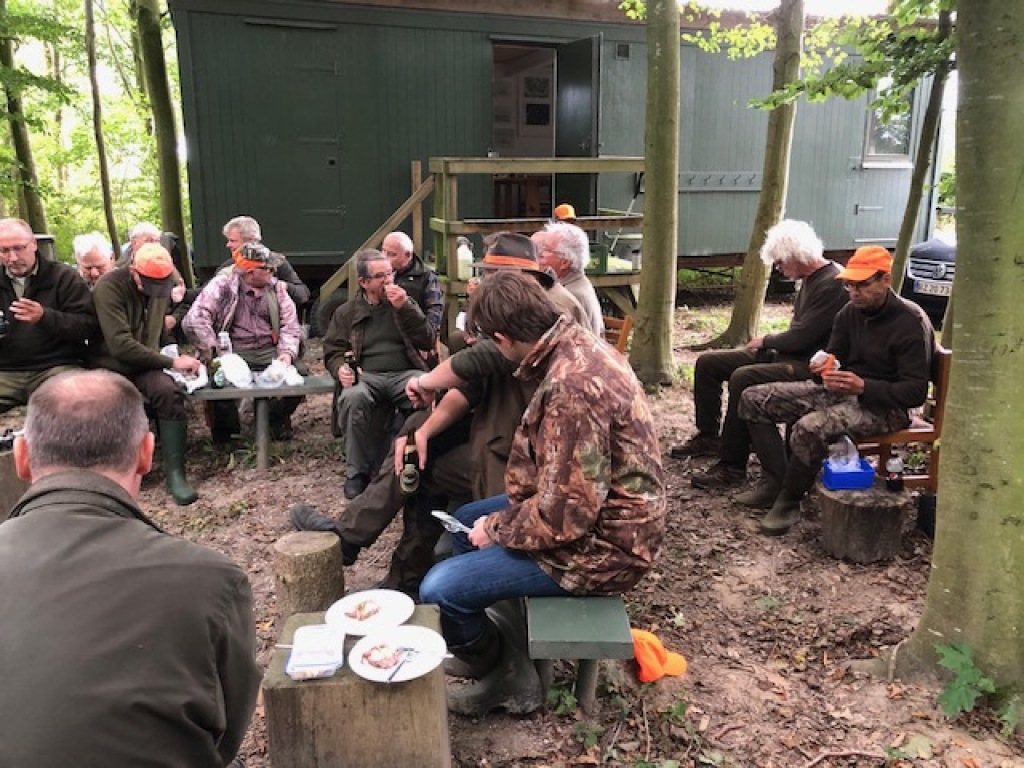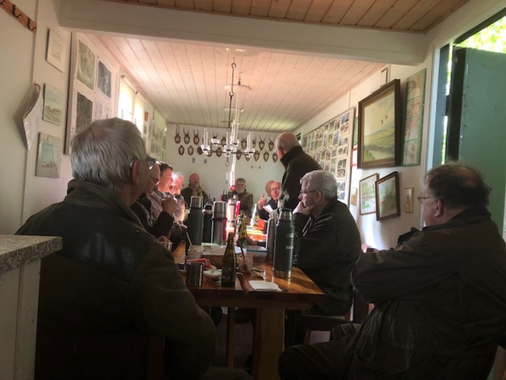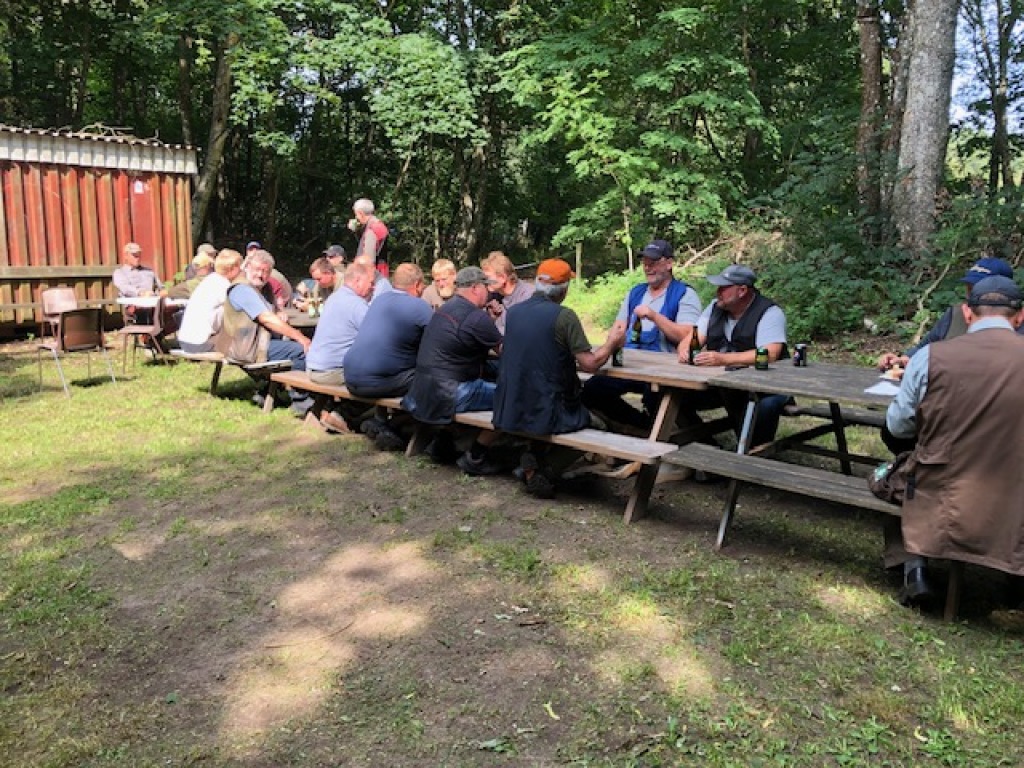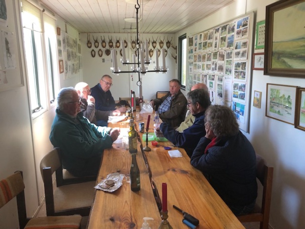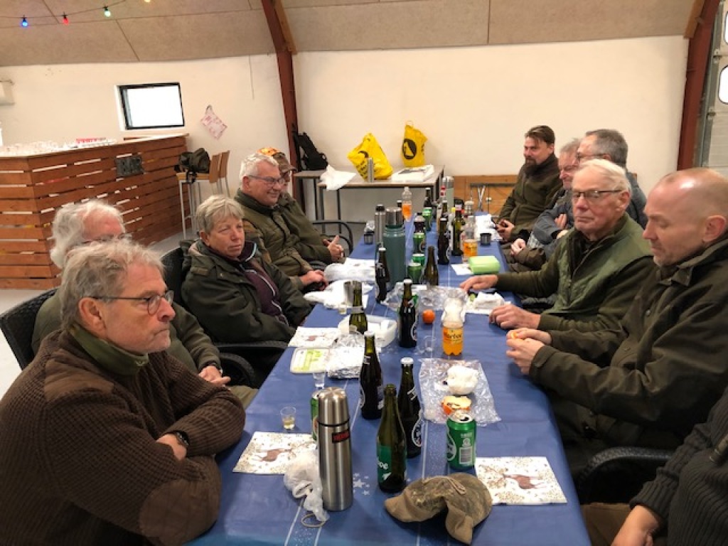 Efter endt dont samledes vi i jagthytten, hvor vi indtog vores madpakker under megen og god hyggesnak.