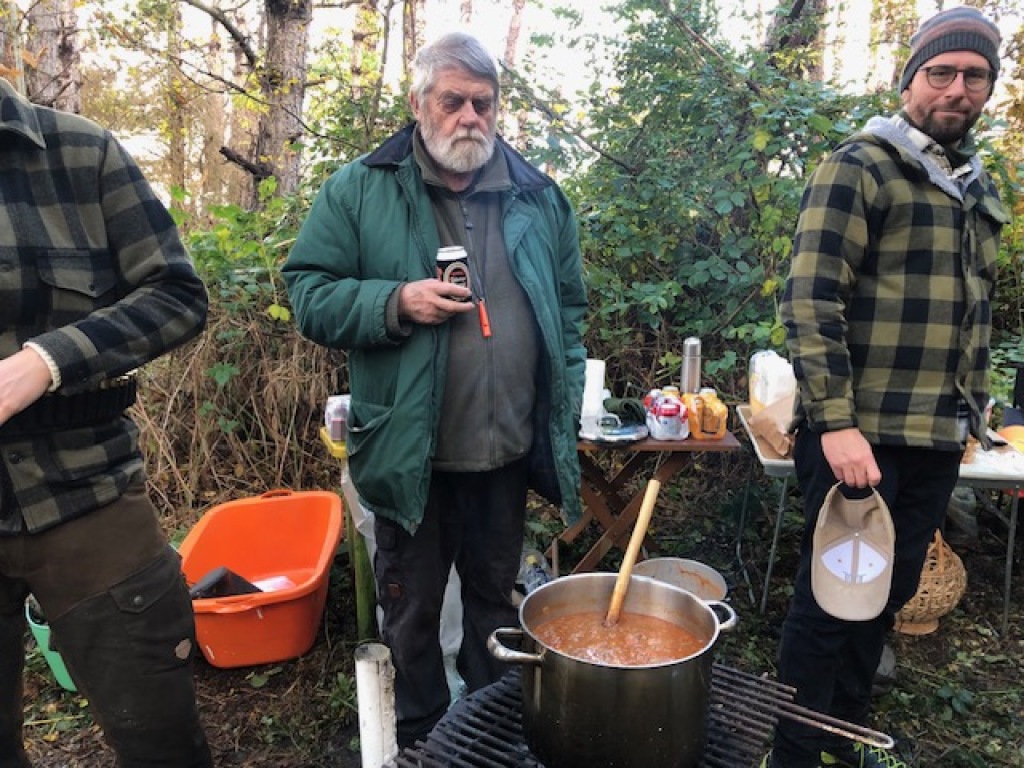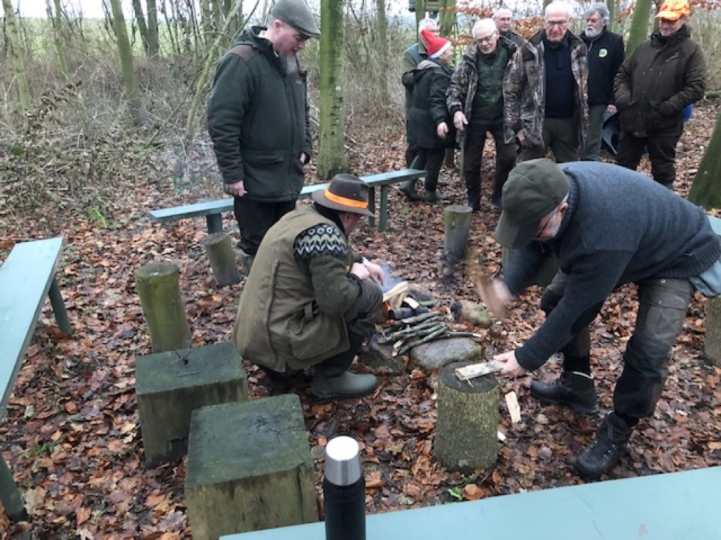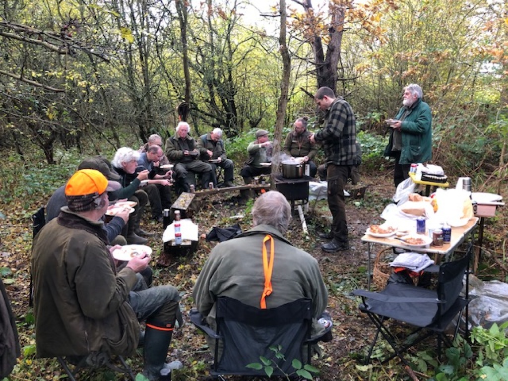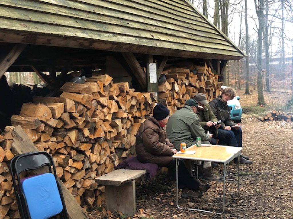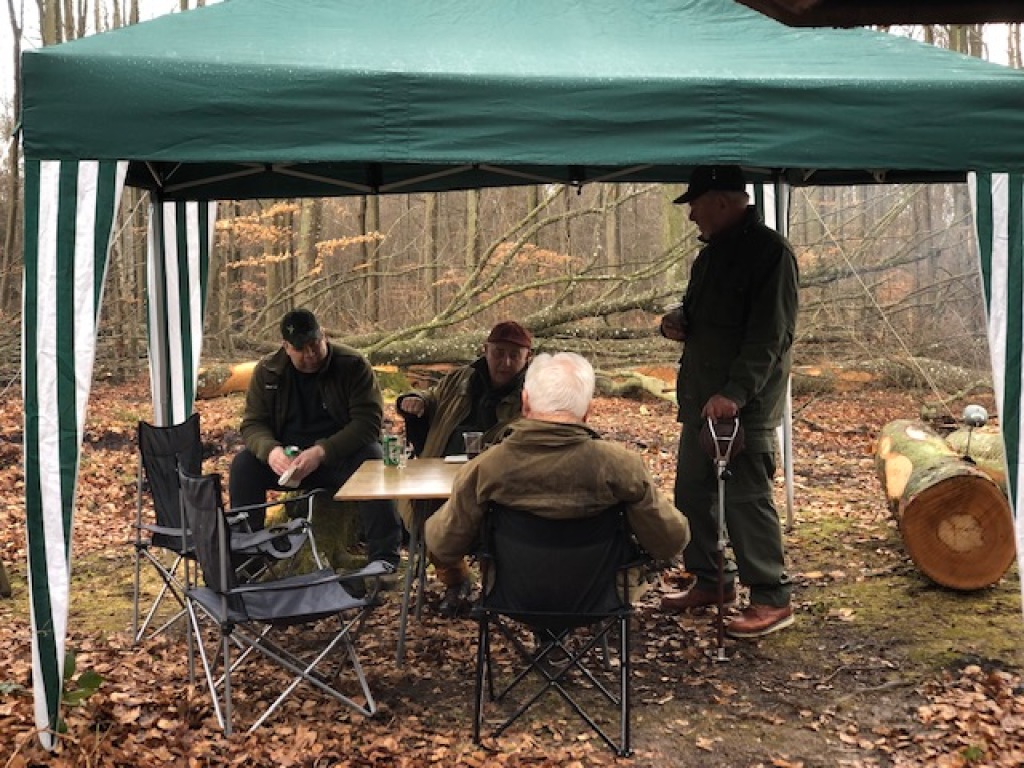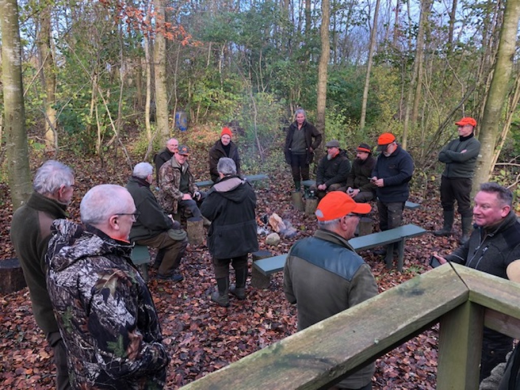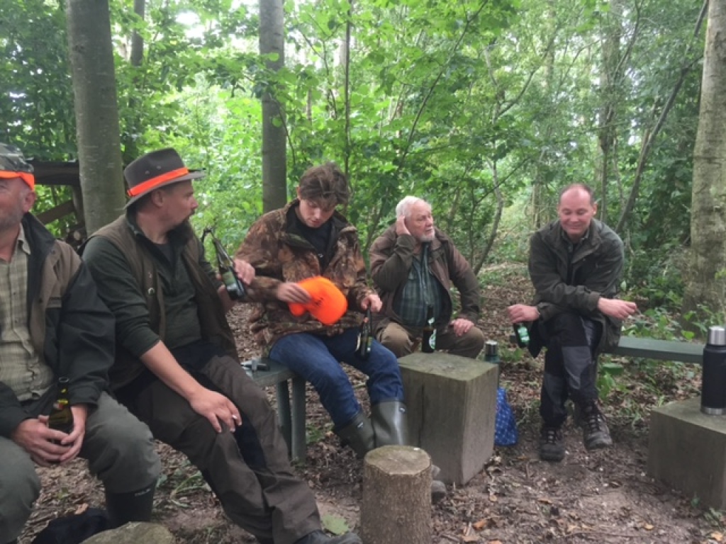 Efter endt dont samledes vi i jagthytten, hvor vi indtog vores madpakker under megen og god hyggesnak.