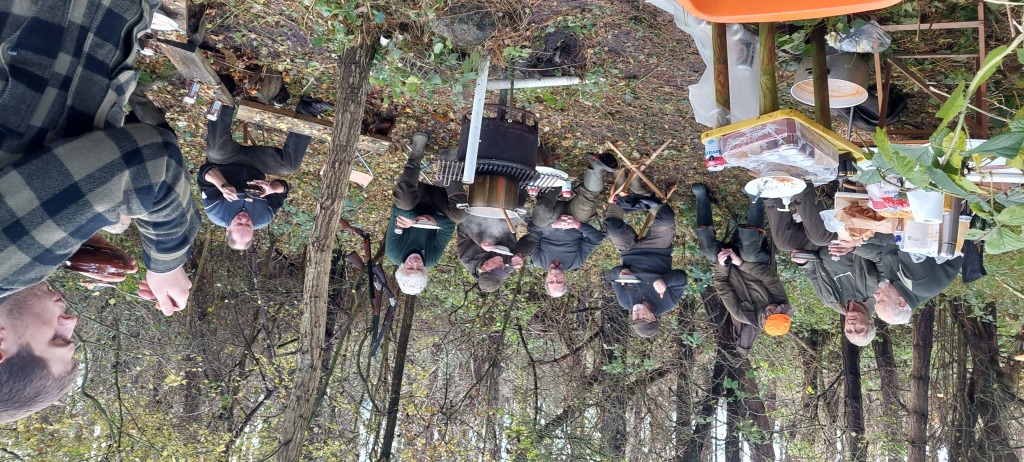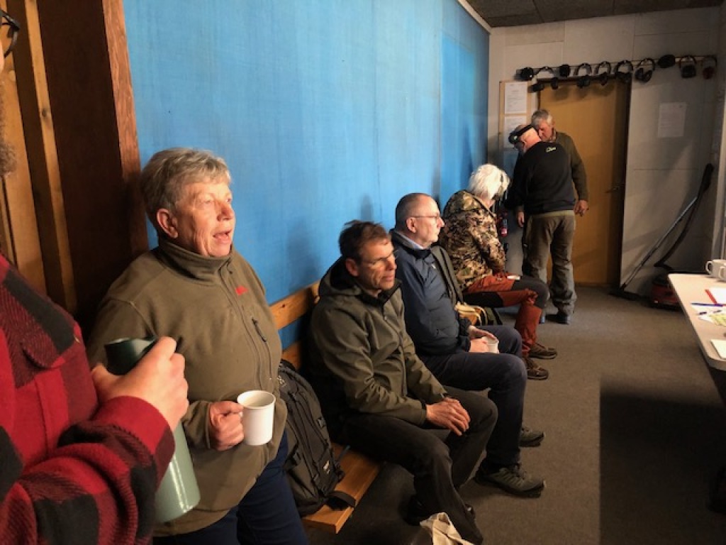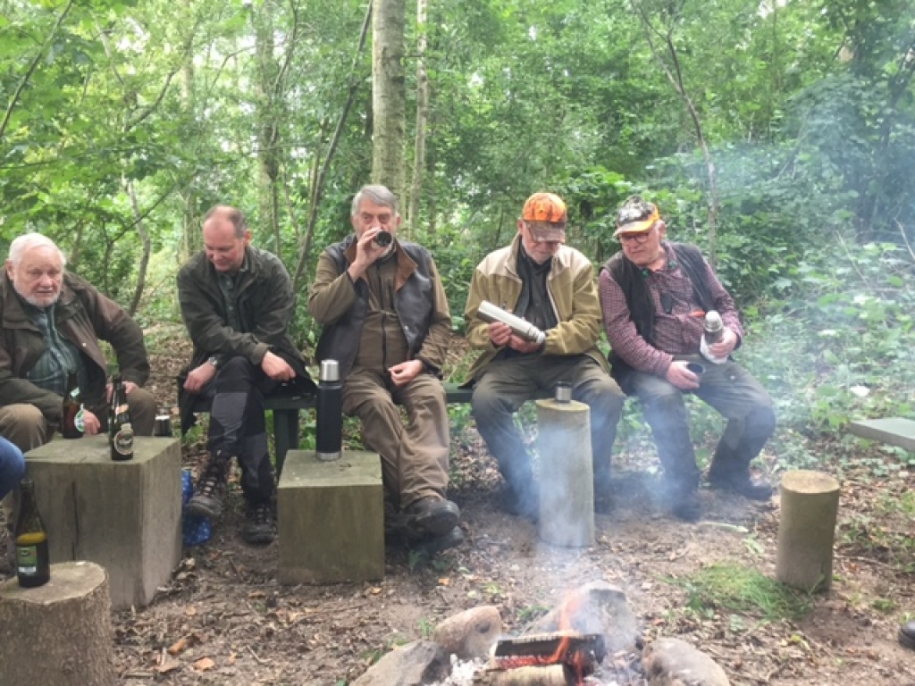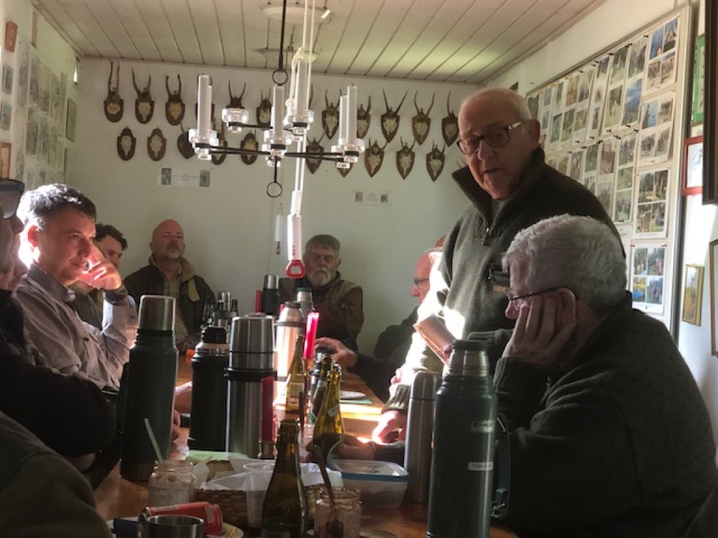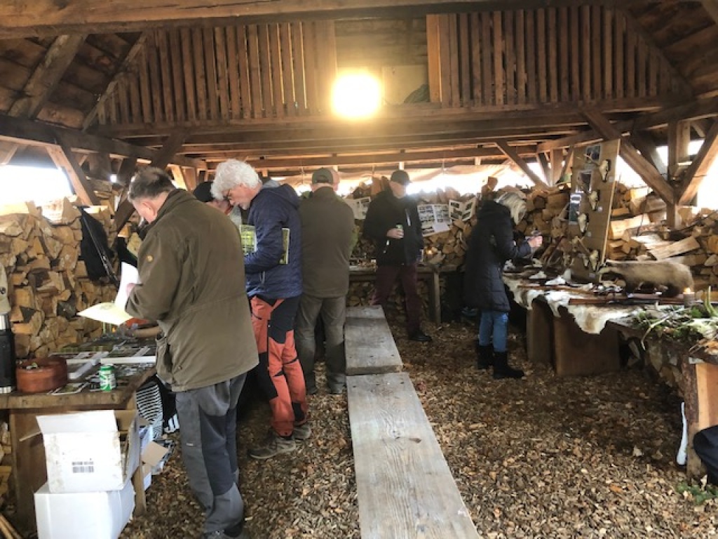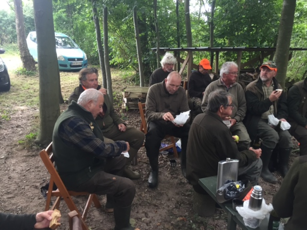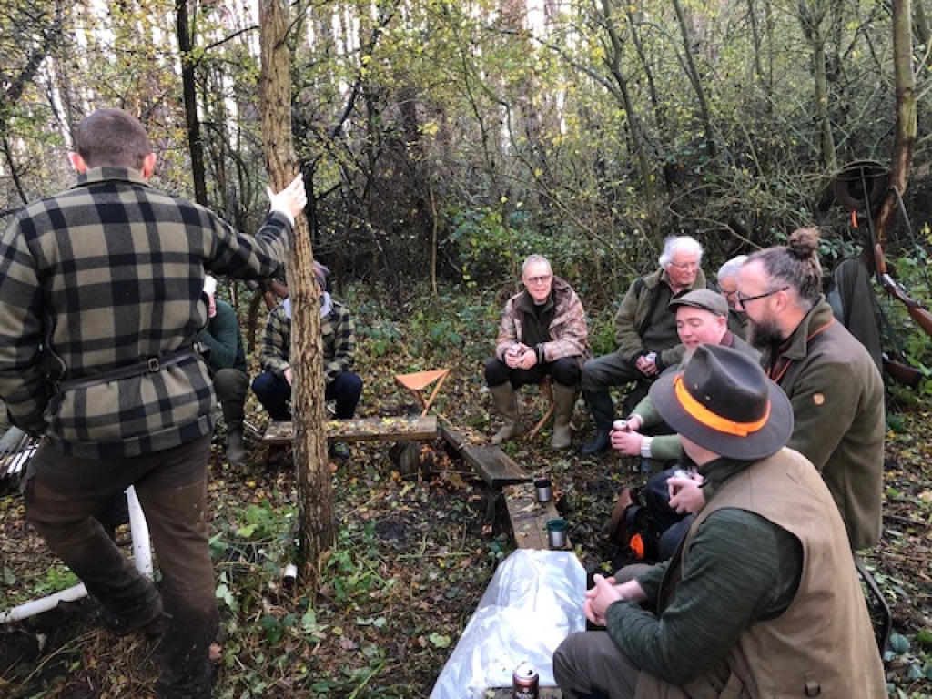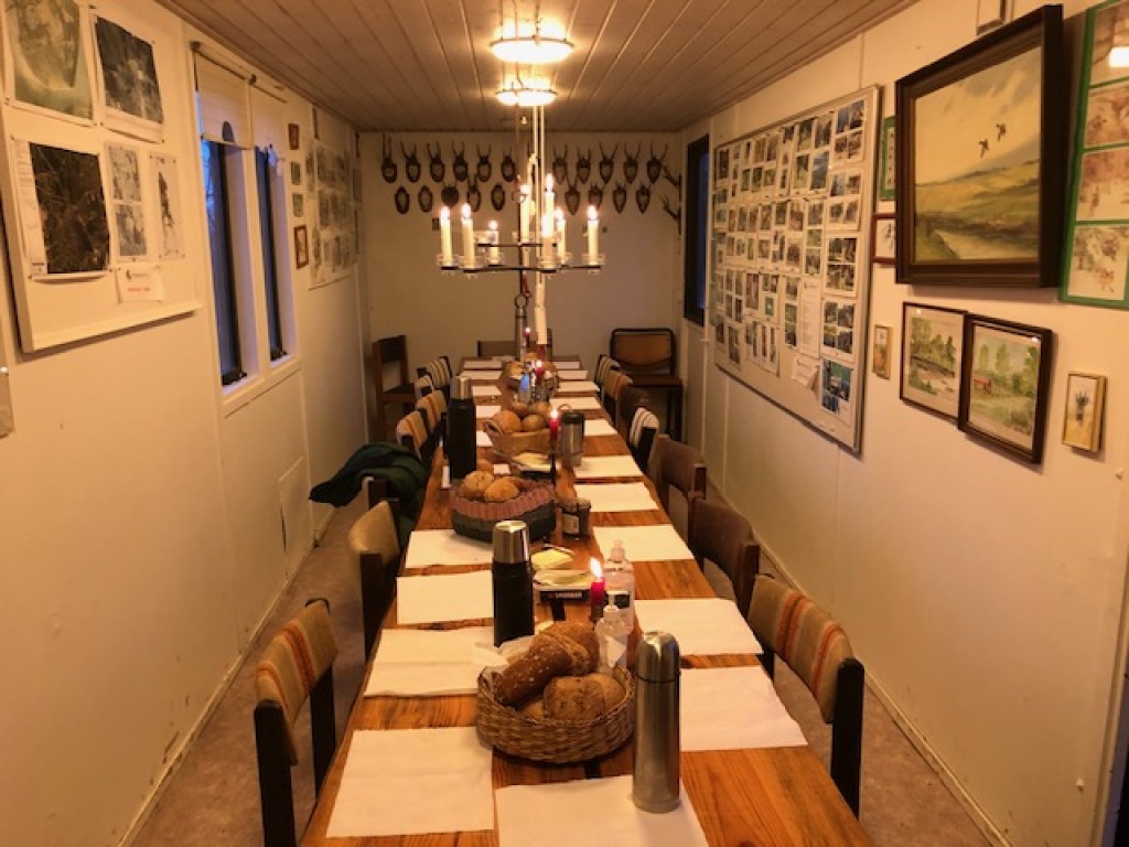 Efter endt dont samledes vi i jagthytten, hvor vi indtog vores madpakker under megen og god hyggesnak.