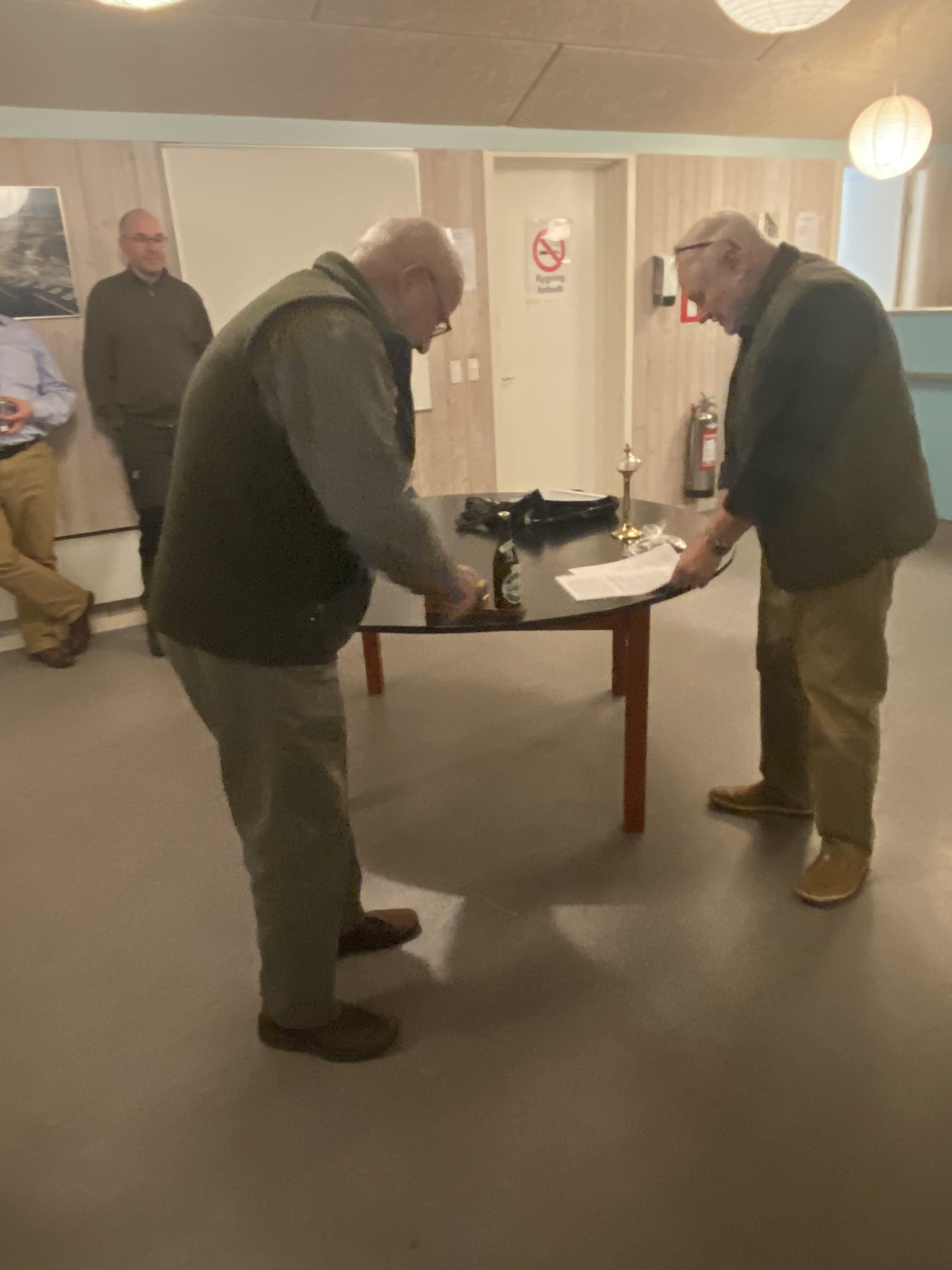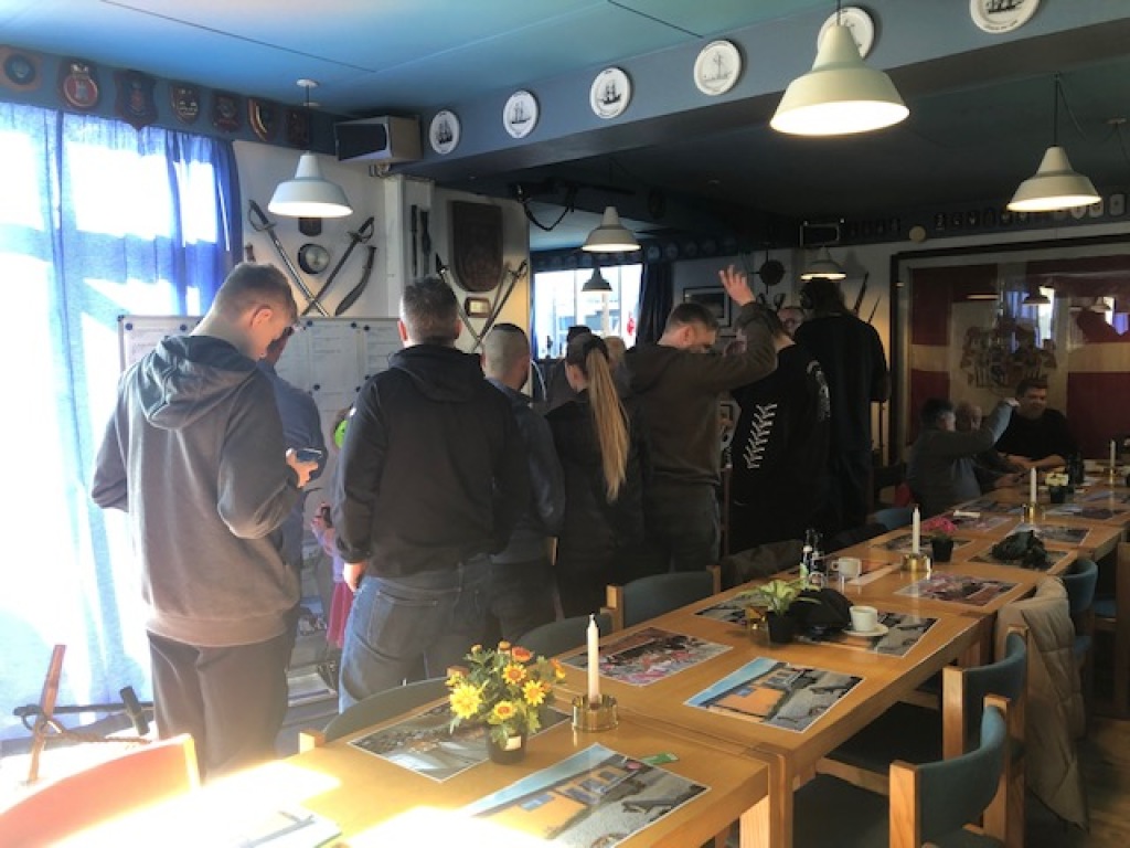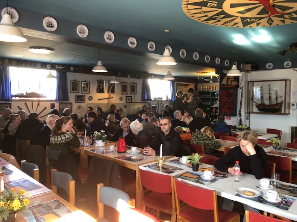 De, der gerne ville hurtigt hjem og se 2. halvleg af håndboldkampen, skyndte sig at sige farvel, mens andre blev siddende og fortsatte hyggesnakken en lille times tid.