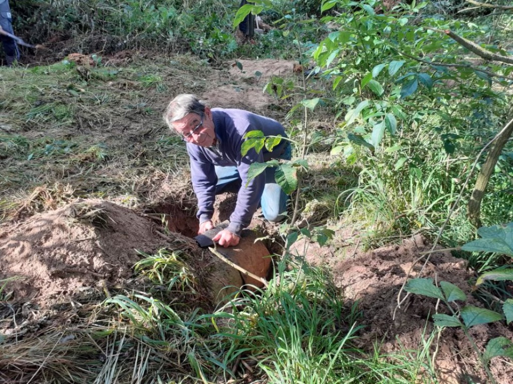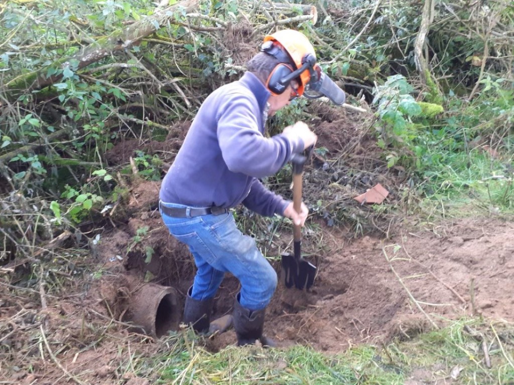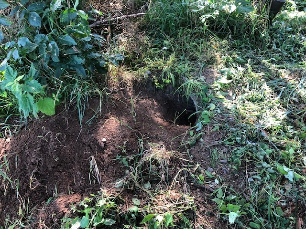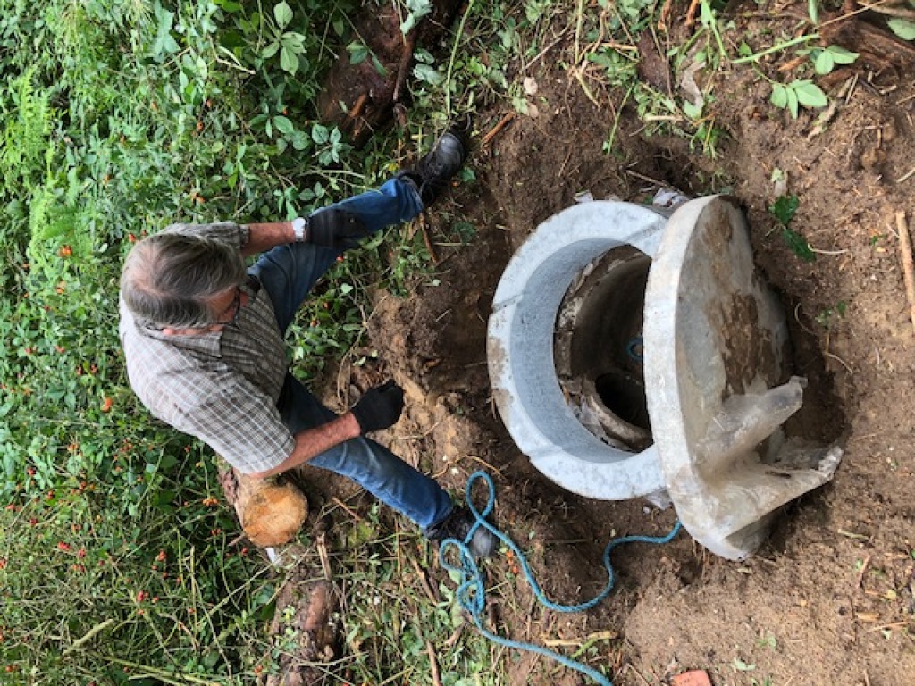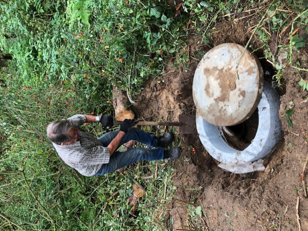 Endelig blev kunstgraven i remisen ved stige 7 renset. Kedlen blev åbnet og der blev trukket et juletræ gennem begge rør, således at graven nu igen kan tages i brug af Mikkel, - og måske give gode gravjagt-oplevelser til vinter.
