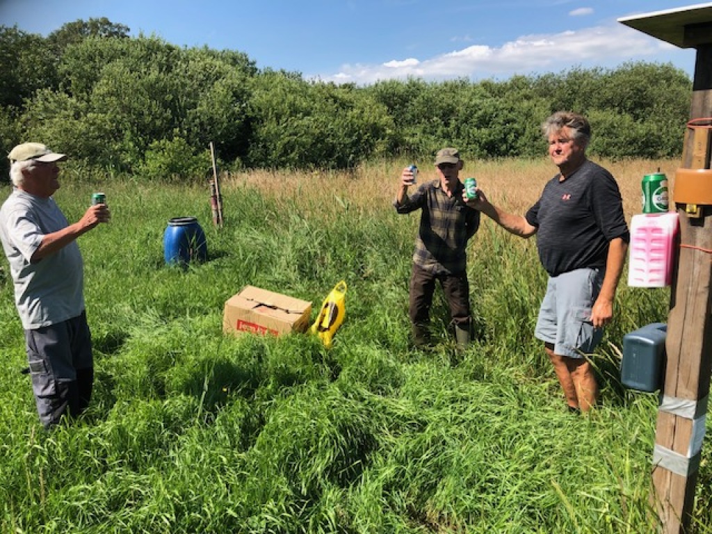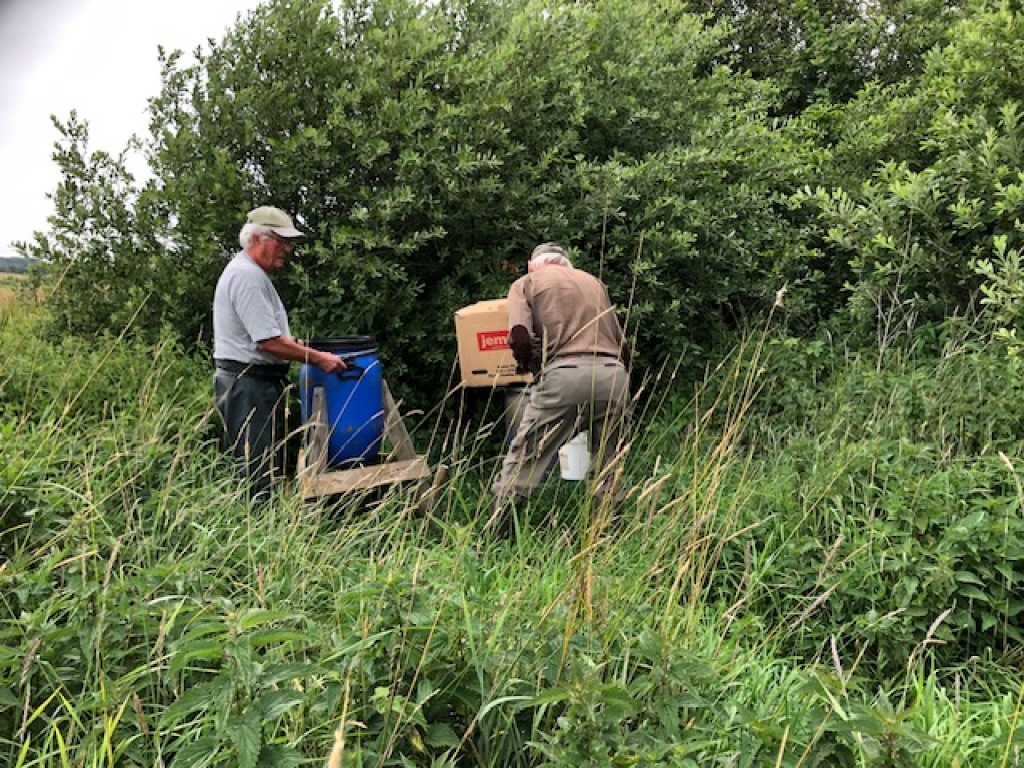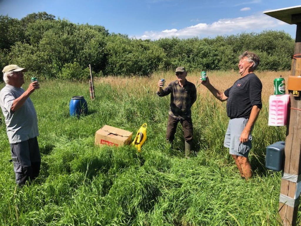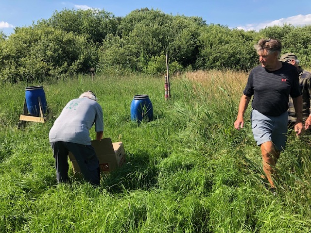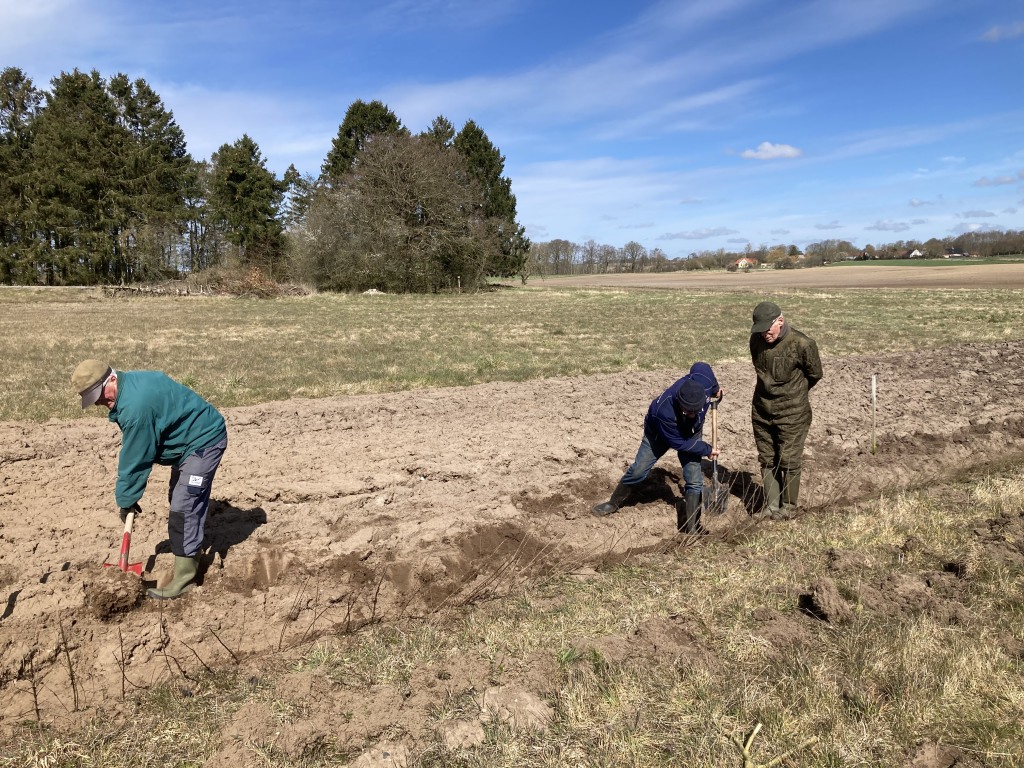 Vores gode medlemmer, Klaus Boll, K.A. Hansen, Carsten Høgsholt og Alvaar Friis var i dag på foreningsreviret, hor de fik det sidste stykke af arealet mellem andesøen og remisen på syd beplantet. Så nu glæder vi os til at virkningen af dette store vildtplejeprojekt. De resterende planter er "slået ned" for at blive brugt som "udfyldningsplanter til efteråret.