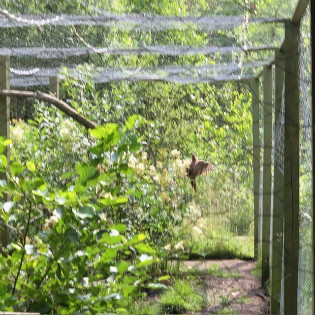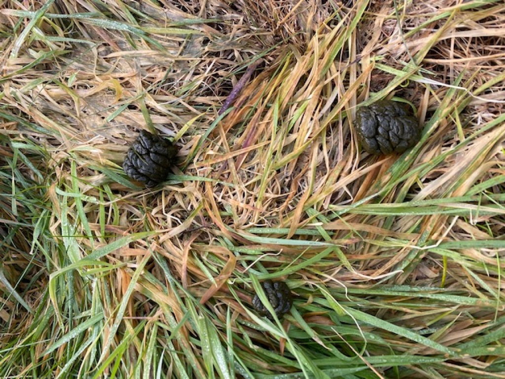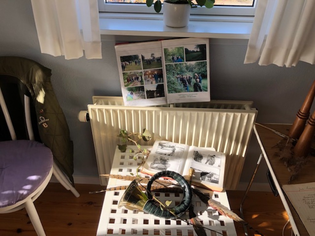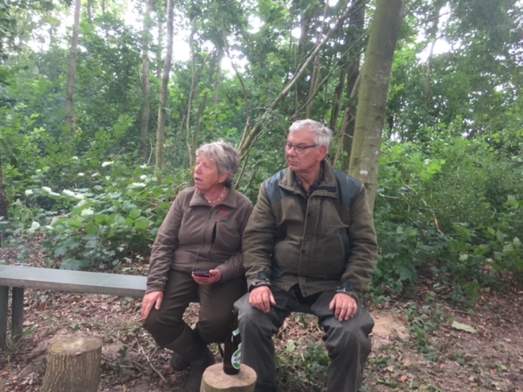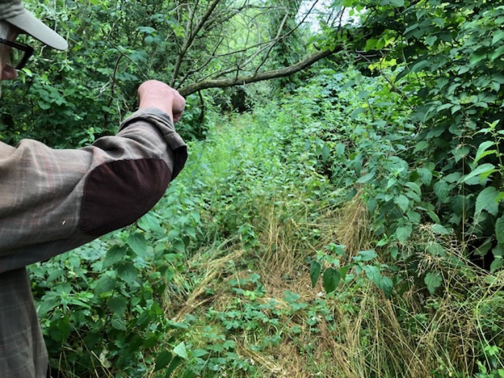 Han virker først interesseret men snuser lige færdig efter en mus han var igang med at fange. Herefter går han i en bue hen mod mig - også han vil gerne have vinden mod sig. Hans rute gør at han forsvinder bag træerne. Jeg sidder bom stille bortset fra at jeg blæser lidt mere i kaldet. Jeg synes jeg kan høre ham inde i hegnet. Så forsvinder lydene igen.