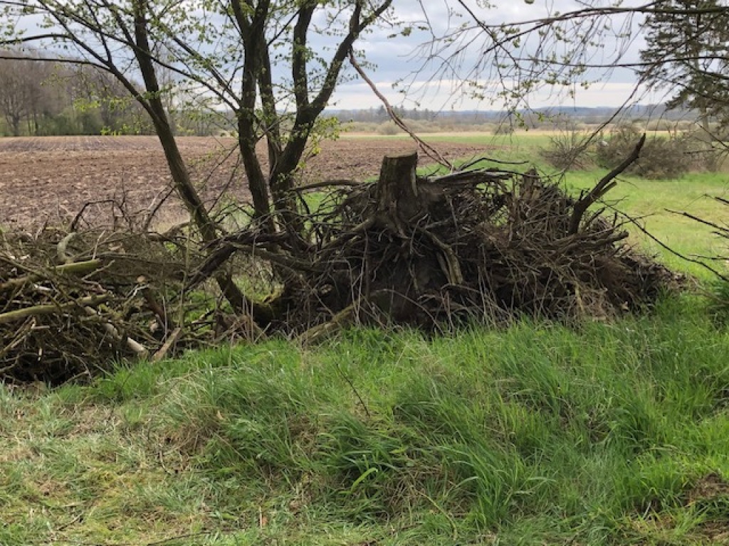 Vi startede med "Skoven", hvor der gik et dyr bagud og skråt op mod remisen, - men der havde vi sat en "strategisk bagpost" ved det fældede læhegn i skellet. Der stod Klaus Boll, der havde fint skud til dyret. Det løb dog videre på trods af, at Klaus også gav det det andet skud.