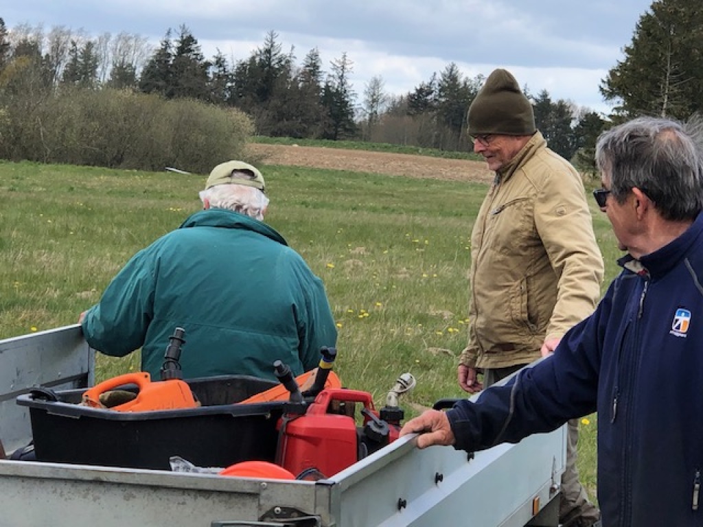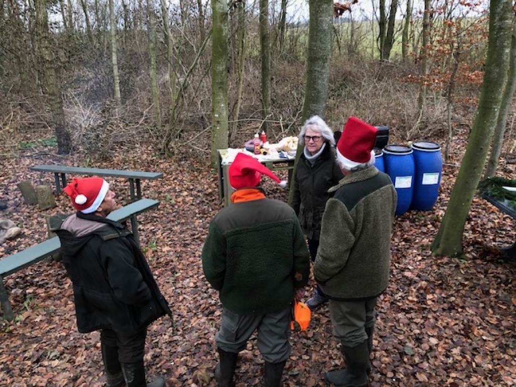 Ti mand, m/k, havde fulgt opfordringen til at møde op denne dag og give en hjælpende hånd ved de af jagtudvalget planlagte revir- og vildtpleje-foranstaltninger. Efter velkomst og "paroledram" ved jagthytten orienterede Klaus Boll og Carsten Høgsholt om dagens opgaver og inddelte deltagerne i fire hold med hver deres opgaver fire forskellige steder på reviret.
