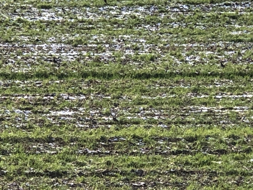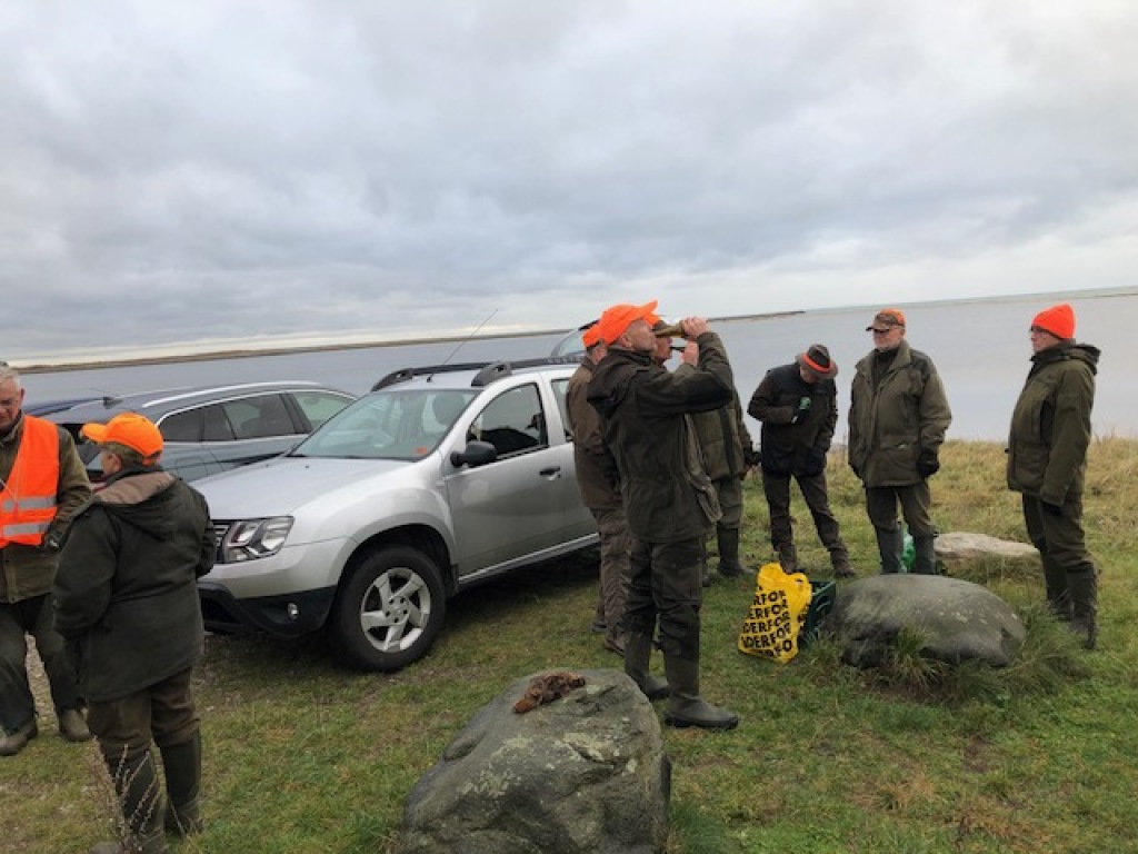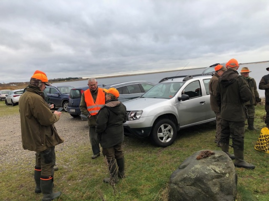 Det blæste "en halv pelikan", da vi mødtes ved sydenden af Slusesåten; så det gik gennem marv og ben ! Det blev derfor er kort parole, hvor det blev "befalet", at man skulle beholde huerne på. Der var ingen af de 9 deltagende, der ligefrem stod i kø for at være blandt de, der der skulle stå på post på havsiden. Yderst forståeligt. Tilsidst var der dog 3, der meldte sig frivilligt. Dem satte Stig Troelsen på post, mens formanden satte af langs vejen. Det vigtigste var dog, at det holdt tørvejr på trods af vejerprofeternes varslinger om kraftig regn. Der blev lettet 4 bekkasiner, som der selvsagt ikke blev skudt til, da vi jo har passeret 31. december.