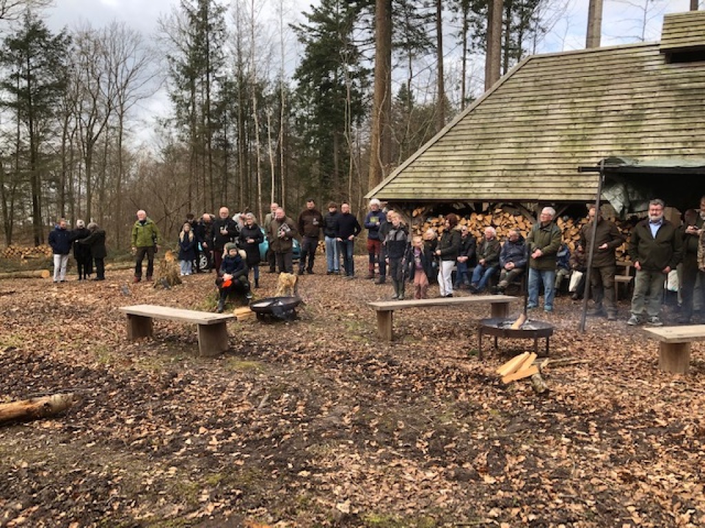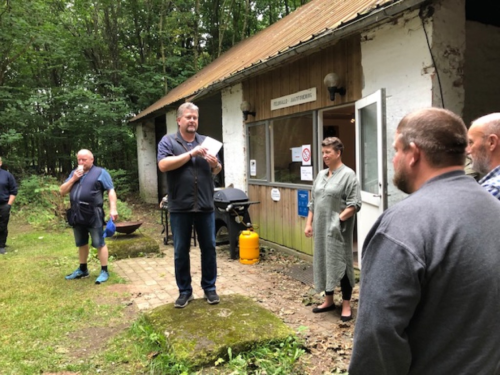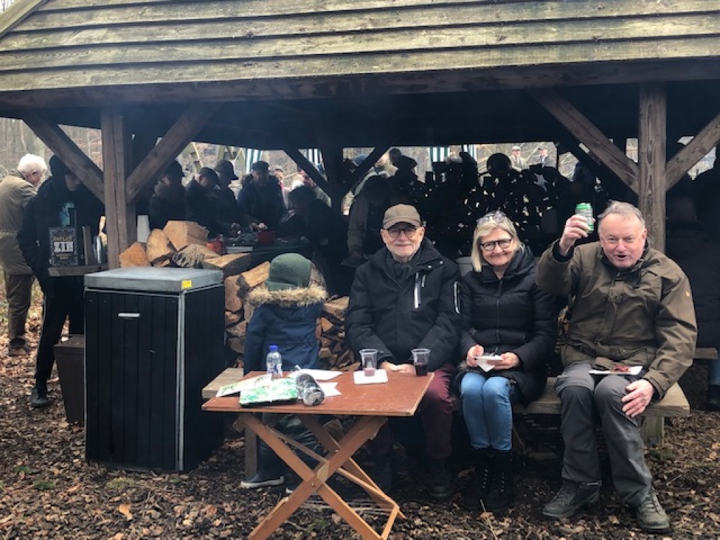 Hyggelig, festlig og velbesøgt "frilufts-reception" i Jægerforbundets bålhytte ved "Jagtens Hus", Kalø.