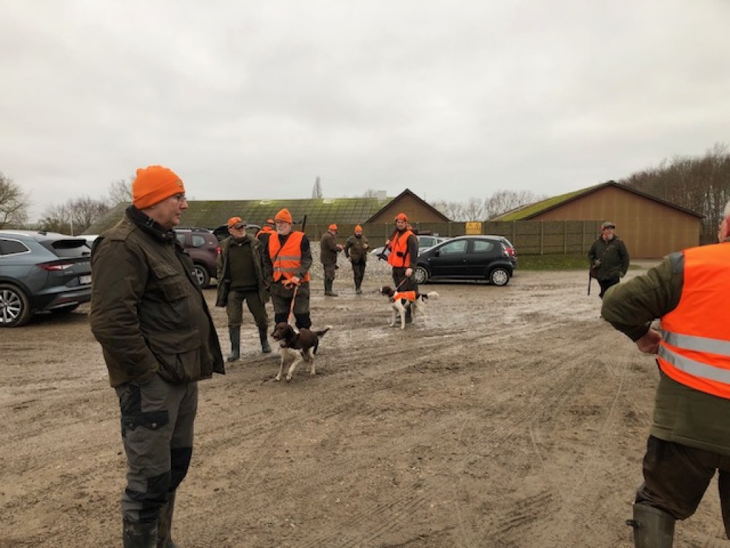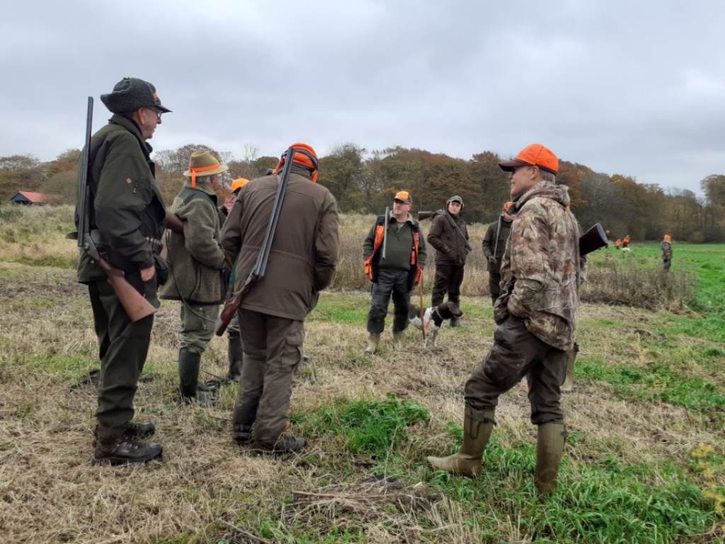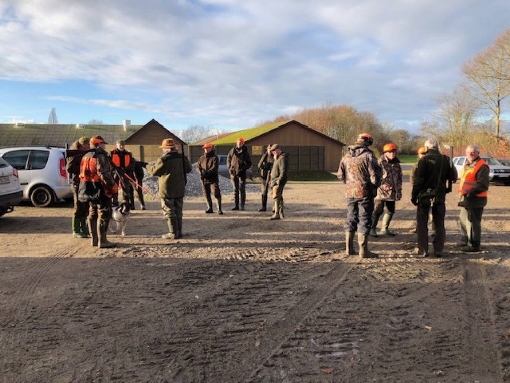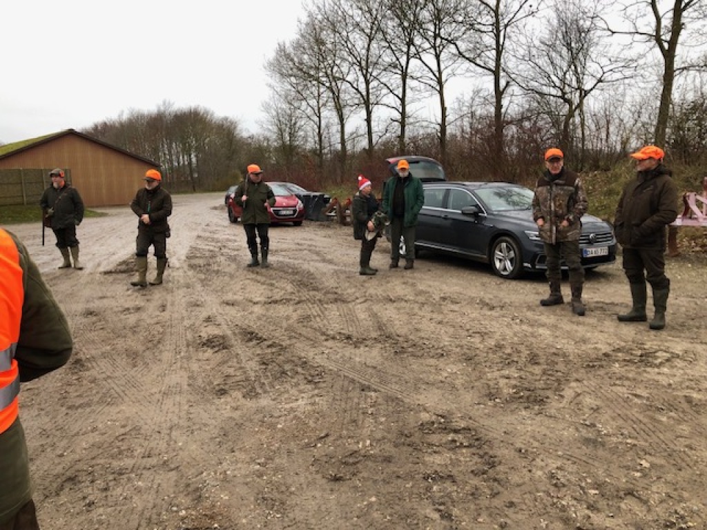 13 deltagere havde fundet sæsonens afslutningsjagt værd at stå tidligt op for at deltage i. Heraf 1 gæst uden gevær, 1 barn (selvsagt også uden gevær) og 4 hundeførere. D.v.s. 7 mand til at stå for. Efter hyggelig morgenkaffe i jagthytten og efterfølgende parole ved bålstedet startede vi som sædvanlig med sydstykket, der også blev drevet af "efter traditionen". Ved remisen nord for søen blev der set en ræv, der skyndsomt "salverede sig" på nabosiden af det nærliggen de skel. I mosen blev der set en enkelt sneppe, der ikke kom ud, men blot slog op og så ned igen bag drevet, "Oles remise" rummede intet, det gjorde derimod pausen i "fabrikken" ("ruinen/laden"). Den rummede de sædvanlige læskedrikke, der bekom alle vel efter den tunge gang i den våde og tunge jord. Da alle både havde fået slukket tørsten og genvundet kræfterne kørtes tilbage til P-pladsen, hvor vi deltes i to hold. Det ene hold med de to hundeførere med de små hunde drev det lange hegn af op til og med søen og tilbage igen. Det andet hold kørte til "Den Gule Gård", hvor "skrubbet" omkring gården samt remisen ved stige 2 blev gået igennem. I skrubbet omkring gården lettede en fasankok, der forstandigt valgte at tage den flyrute, hvor det ikke var muligt at skyde til den. Derudover blev der intet set af nogen af holdene.