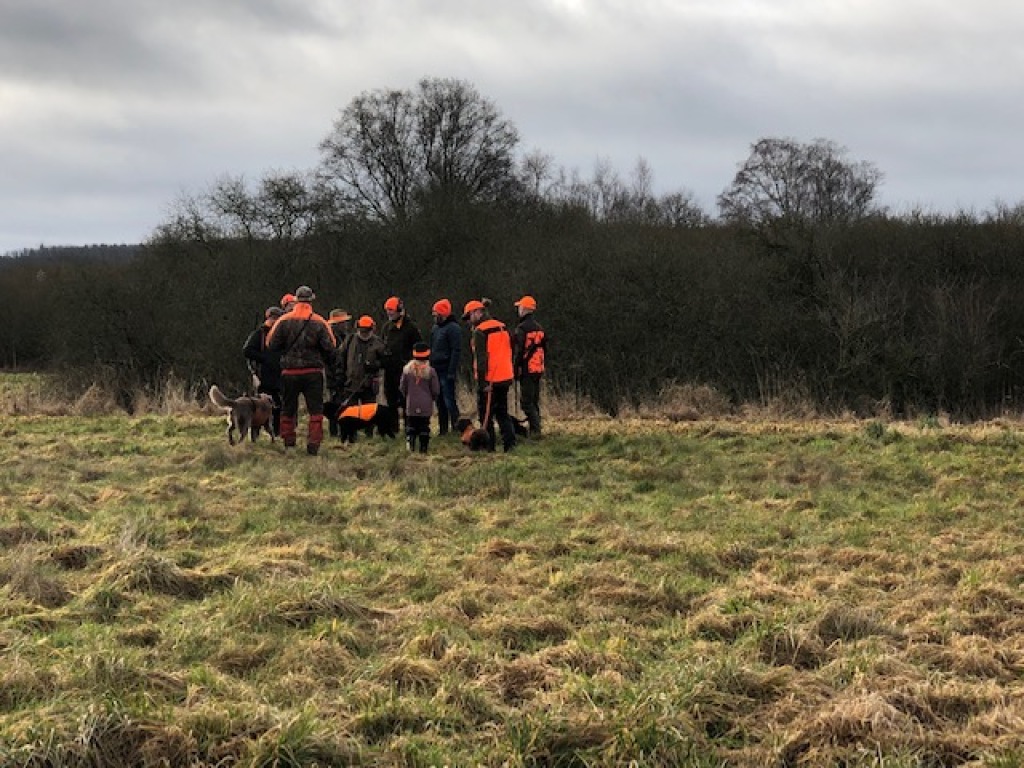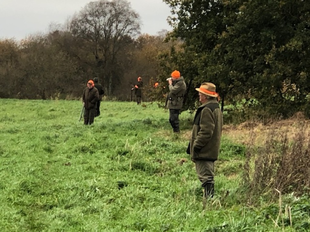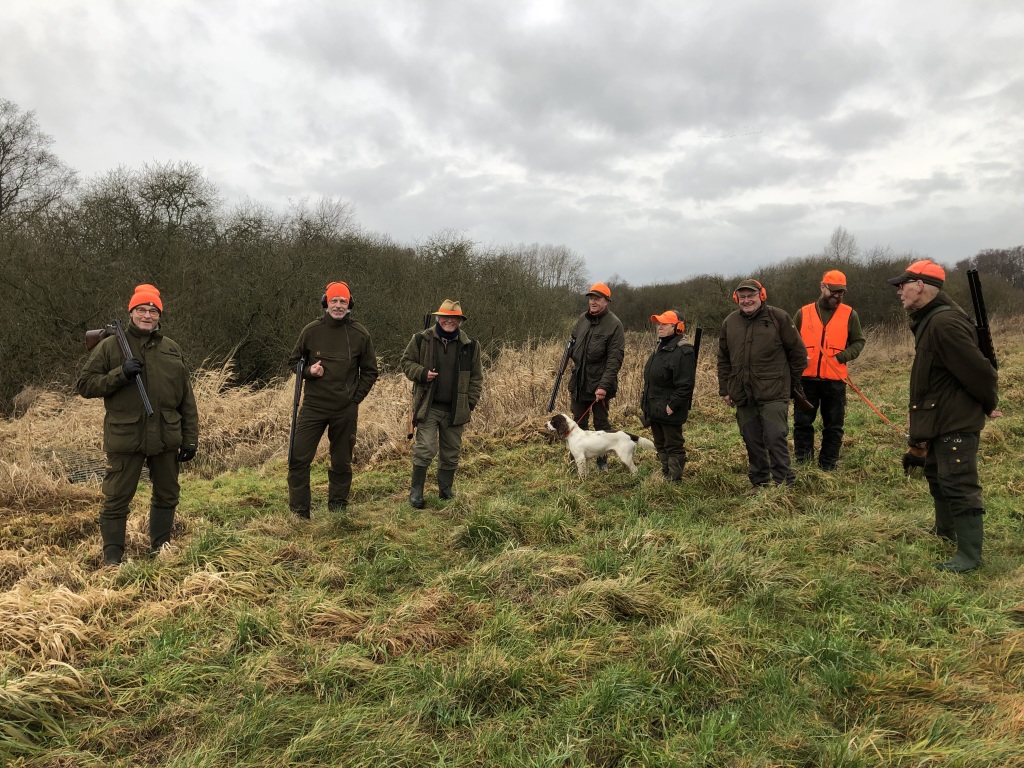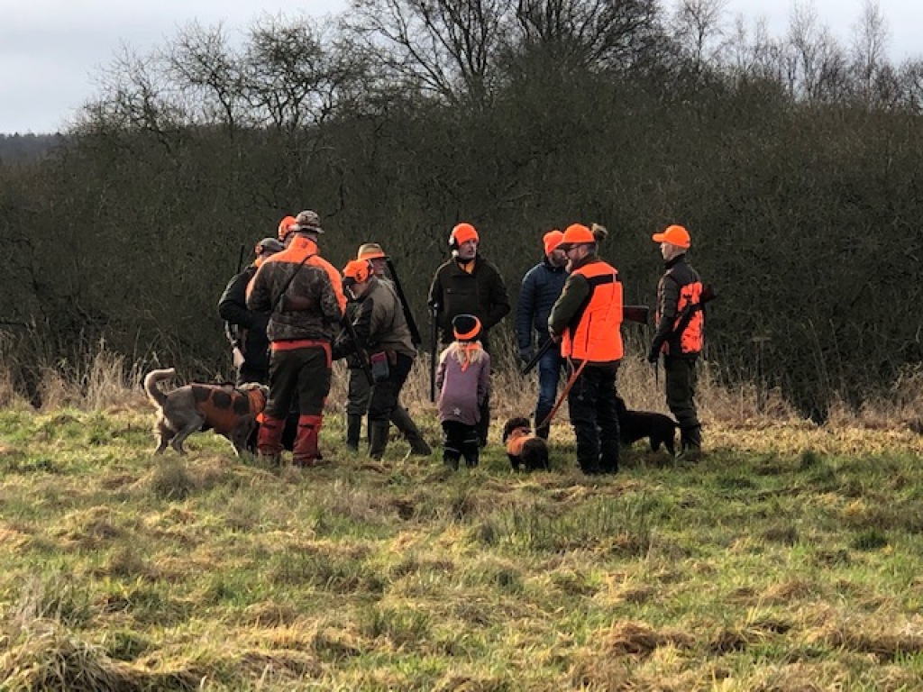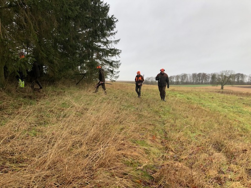 13 deltagere havde fundet sæsonens afslutningsjagt værd at stå tidligt op for at deltage i. Heraf 1 gæst uden gevær, 1 barn (selvsagt også uden gevær) og 4 hundeførere. D.v.s. 7 mand til at stå for. Efter hyggelig morgenkaffe i jagthytten og efterfølgende parole ved bålstedet startede vi som sædvanlig med sydstykket, der også blev drevet af "efter traditionen". Ved remisen nord for søen blev der set en ræv, der skyndsomt "salverede sig" på nabosiden af det nærliggen de skel. I mosen blev der set en enkelt sneppe, der ikke kom ud, men blot slog op og så ned igen bag drevet, "Oles remise" rummede intet, det gjorde derimod pausen i "fabrikken" ("ruinen/laden"). Den rummede de sædvanlige læskedrikke, der bekom alle vel efter den tunge gang i den våde og tunge jord. Da alle både havde fået slukket tørsten og genvundet kræfterne kørtes tilbage til P-pladsen, hvor vi deltes i to hold. Det ene hold med de to hundeførere med de små hunde drev det lange hegn af op til og med søen og tilbage igen. Det andet hold kørte til "Den Gule Gård", hvor "skrubbet" omkring gården samt remisen ved stige 2 blev gået igennem. I skrubbet omkring gården lettede en fasankok, der forstandigt valgte at tage den flyrute, hvor det ikke var muligt at skyde til den. Derudover blev der intet set af nogen af holdene.