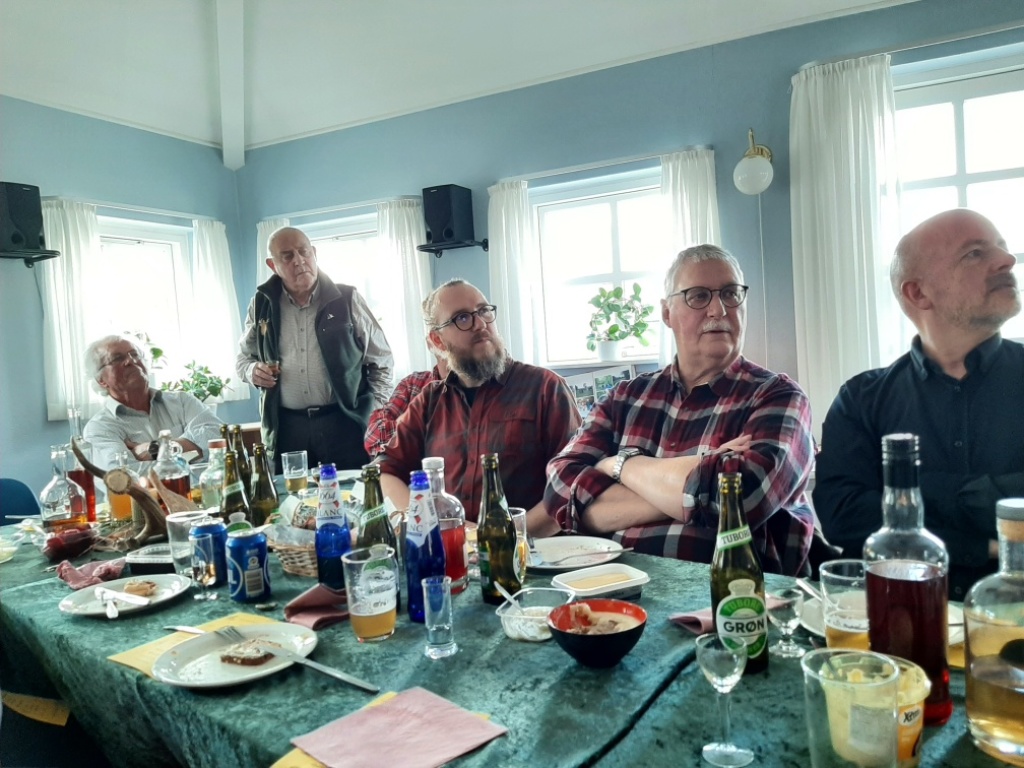 Der var stor spredning af "gamle" og nyere medlemmer, der ikke alle kendte hinanden lige godt, hvorfor der "kørtes" en præsentationsrunde, hvor det var interessant at høre om alles jagtlige baggrund. - Alle hyggede sig, snakken gik livligt, og der blev fortalt et par muntre "anekdoter" - sandfærdige historier - med relation til foreningen. Stemningen var så god, at det kneb for nogle at bryde op, da "det officielle" var slut kl. 17.00.