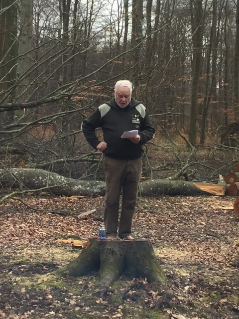 Herefter var der "fra træstubben" lykønskningstaler af formanden for Syddjurs Kommunes NTM-udvalg, Kim Lykke Jensen, af formanden for KFL-udvalget, 2, viceborgmester Heine Skovbak Iversen, af HB-medlem i Danmarks Jægerforbund Torben Schultz Jensen og af foreningens tidligere, mangeårige næstformand, Ole Bisp, der sluttede med at motivere et 3-foldigt leve for den 90-årige forening.